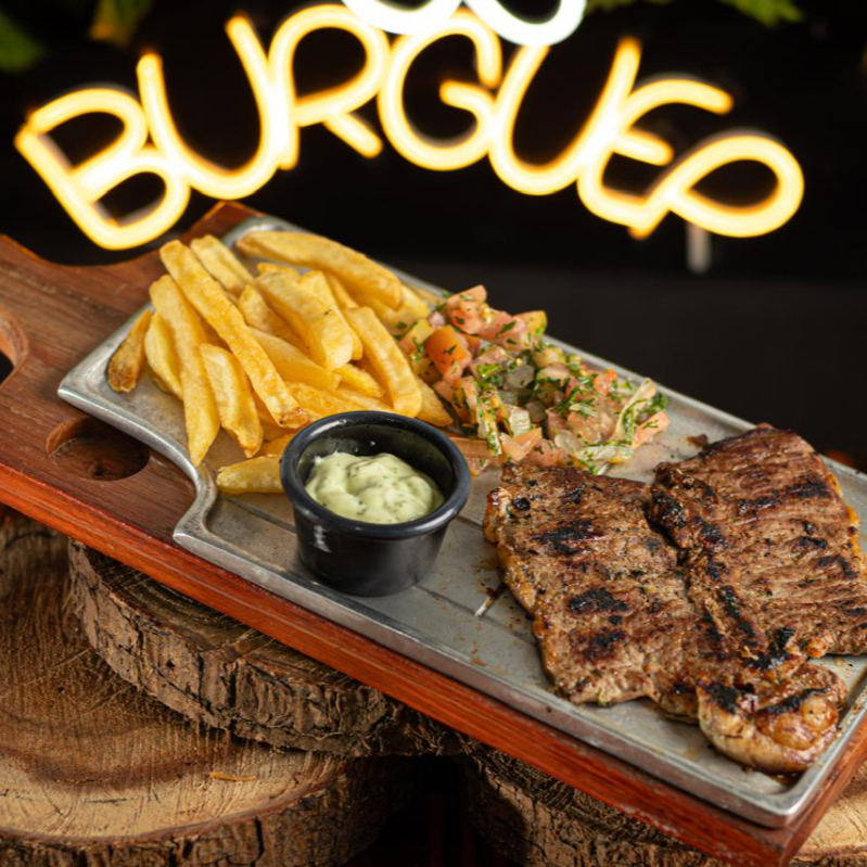 Lomo caracho 200 gramos, papa a la francesa, ensalada, salsa de la casa.