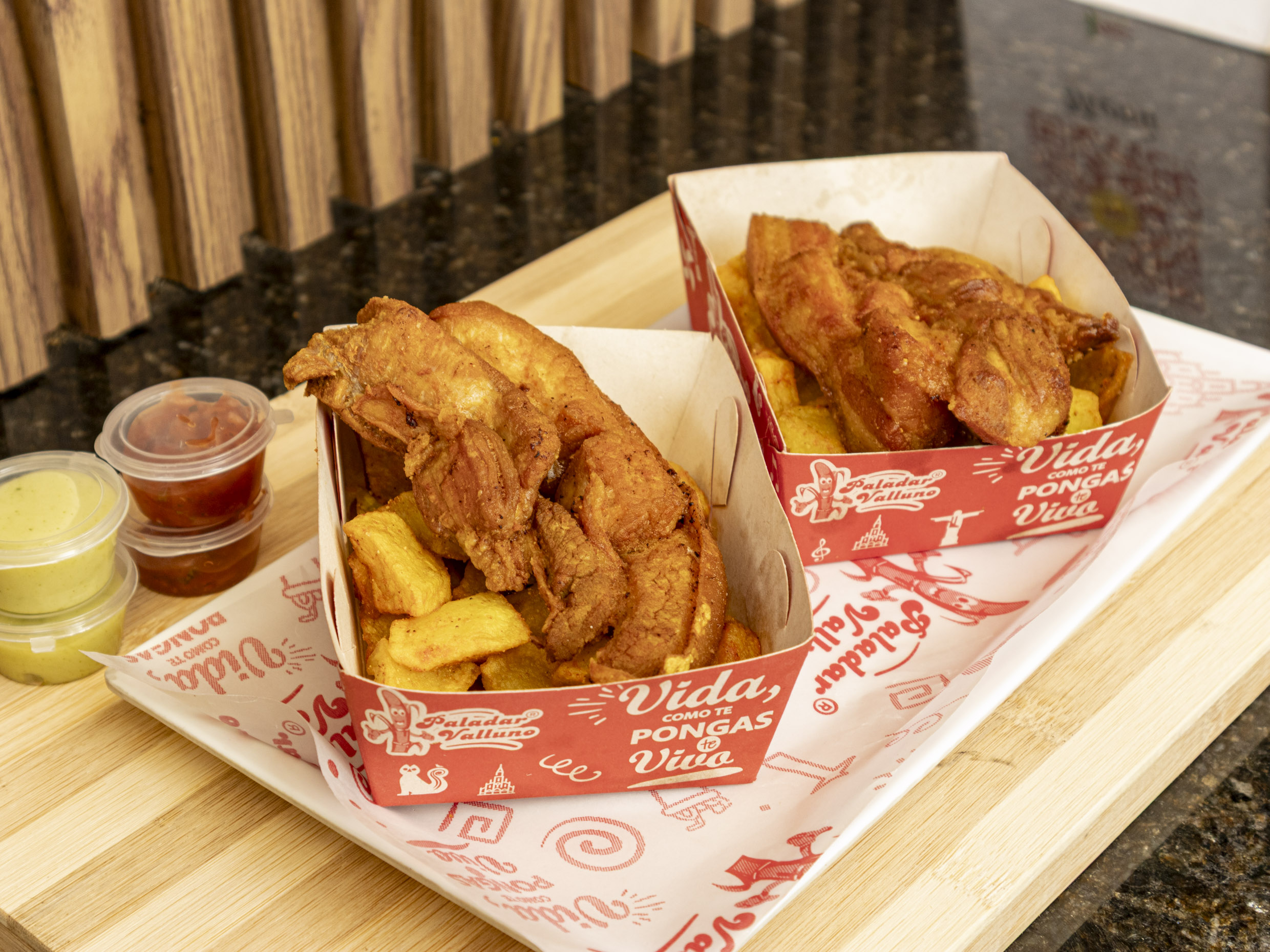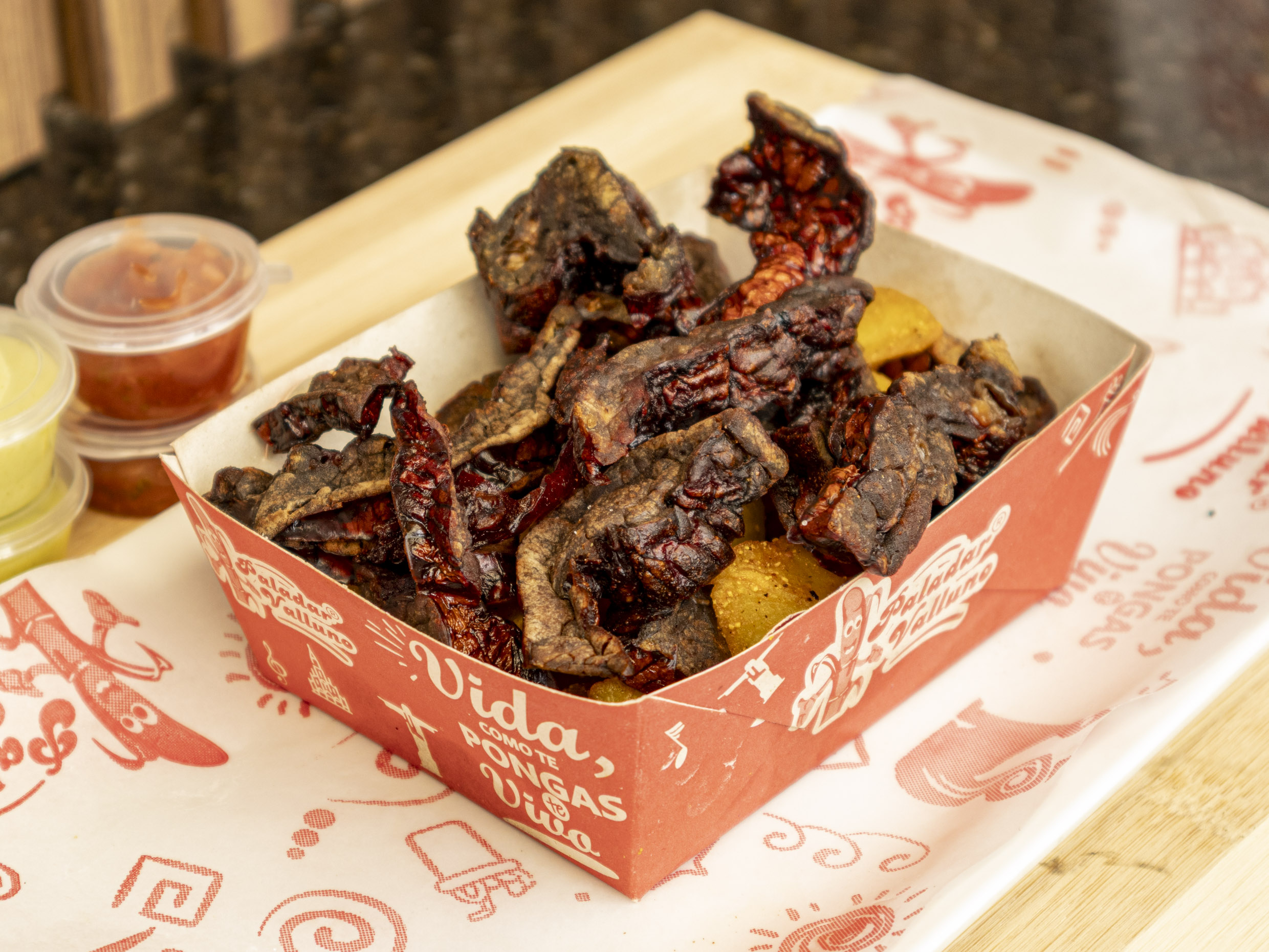 Picada Mira Ve: 2 porciones de Chicharrón, 2 chorizos, Papira Criolla y Maduritos