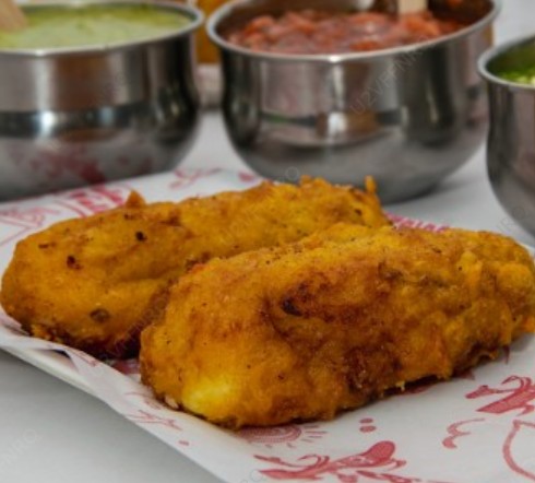 Papa cocida cubierta con mezcla crujiente de harina de trigo y huevo.
