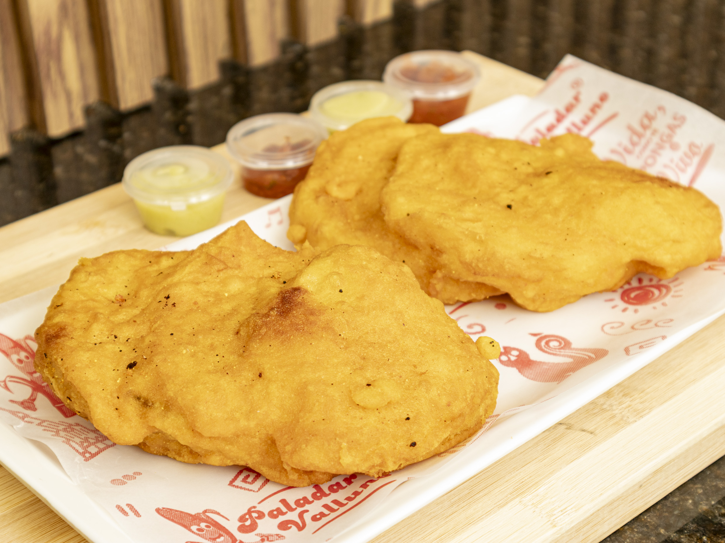 Maduro aborrajado acompañado con centro queso mozzarella recubierto de crocante mezcla de harina de trigo y huevo.