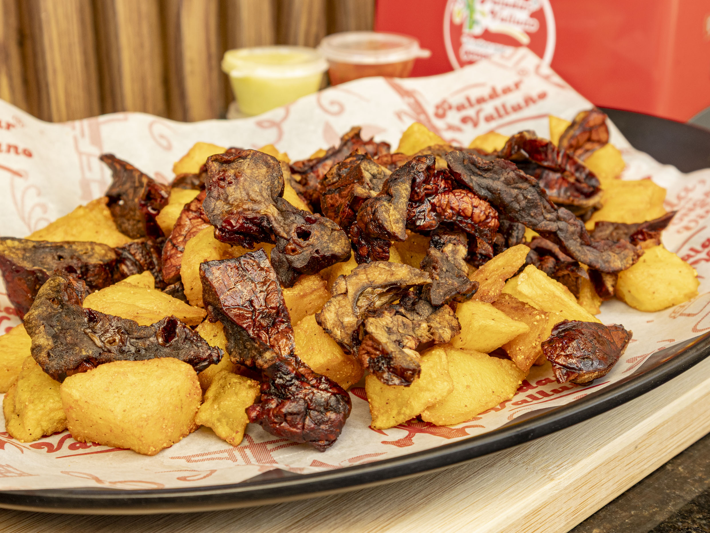 Picada Mira Ve: 2 porciones de Chicharrón, 2 chorizos, Papira Criolla y Maduritos