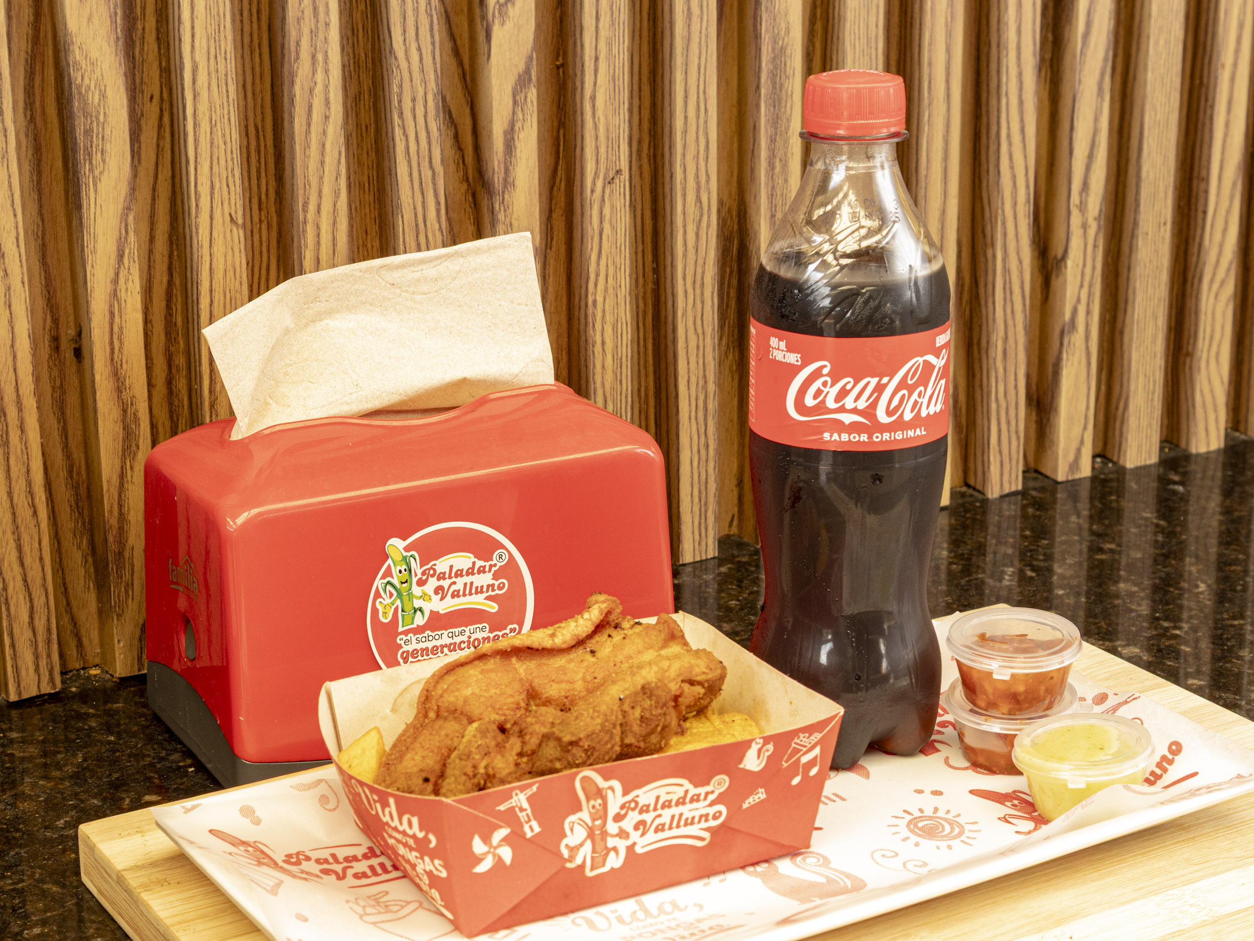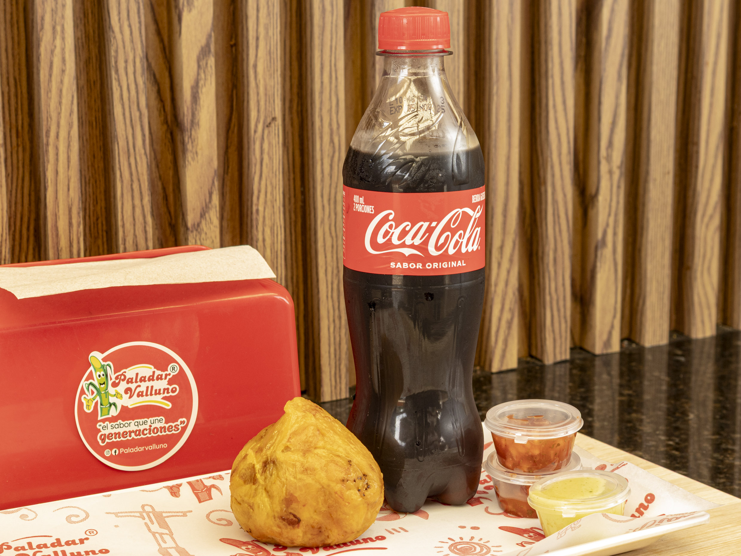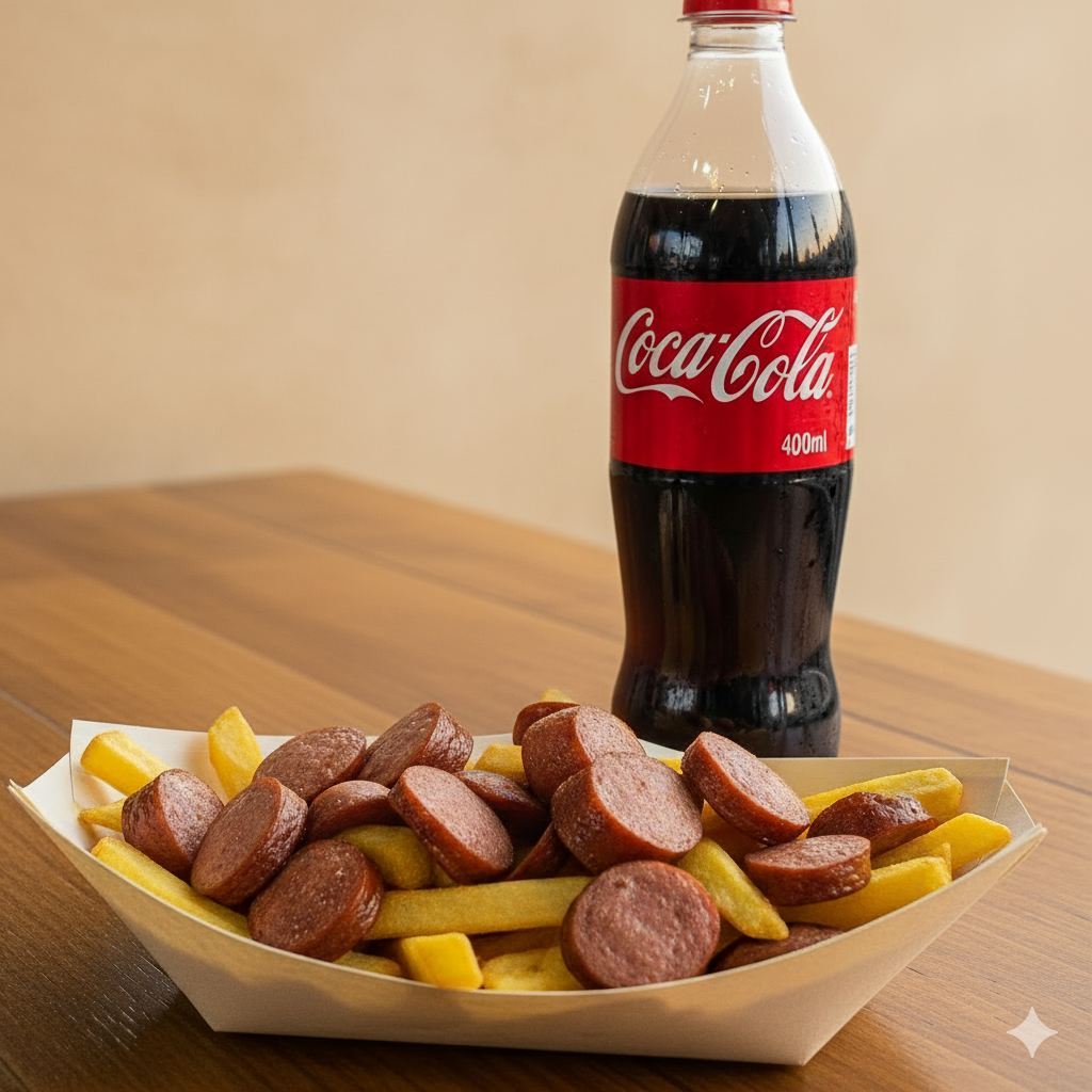 1 salchipapa tamaño personal + 1 Coca Cola 400 ml.