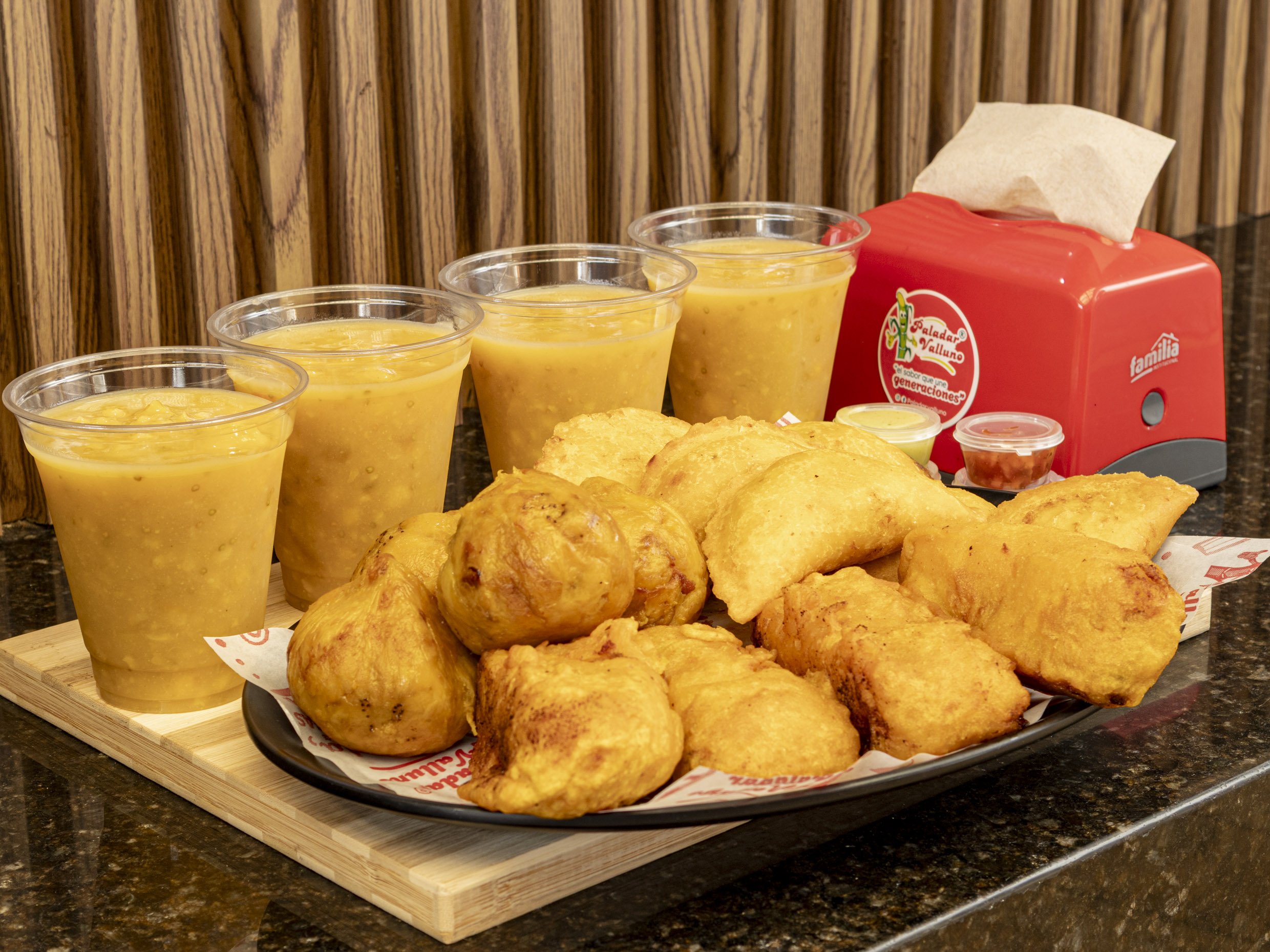 10 Empanadas, 3 aborrajados, 3 marranitas, 3 jugos naturales 600 ml paladar valluno.