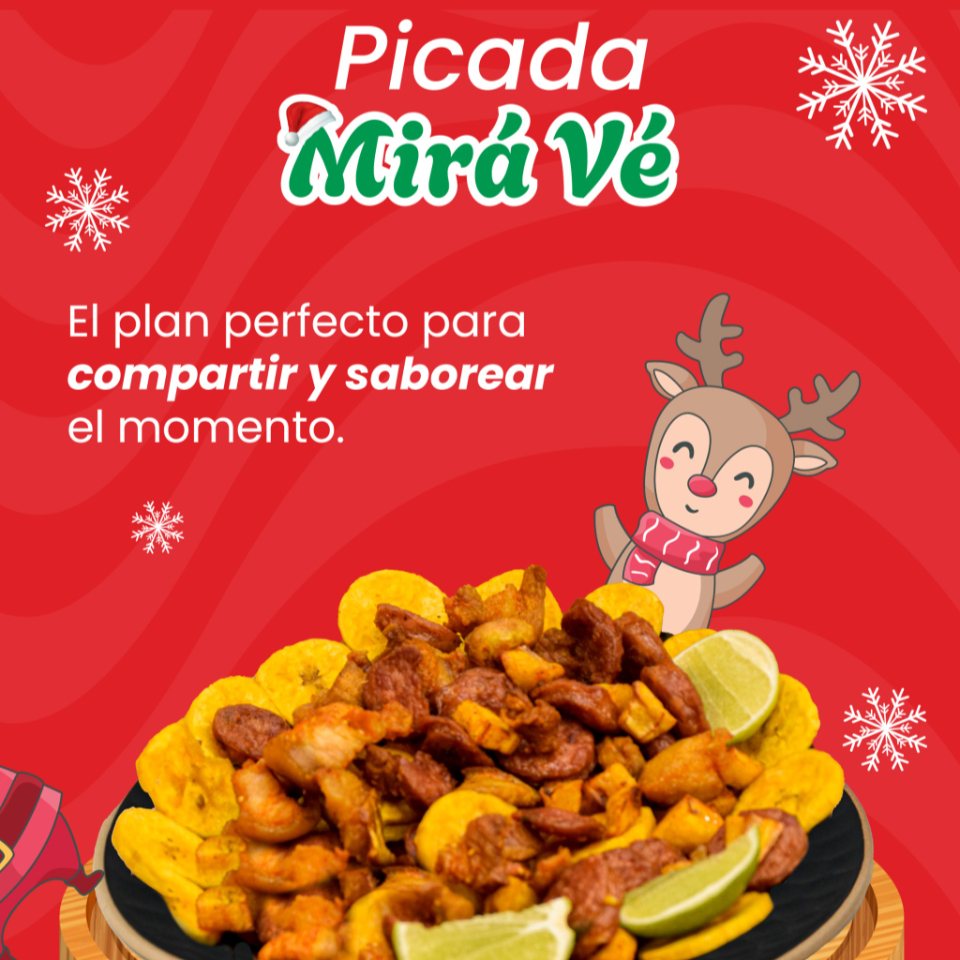 Picada Mira Ve: 2 porciones de Chicharrón, 2 chorizos, Papira Criolla y Maduritos