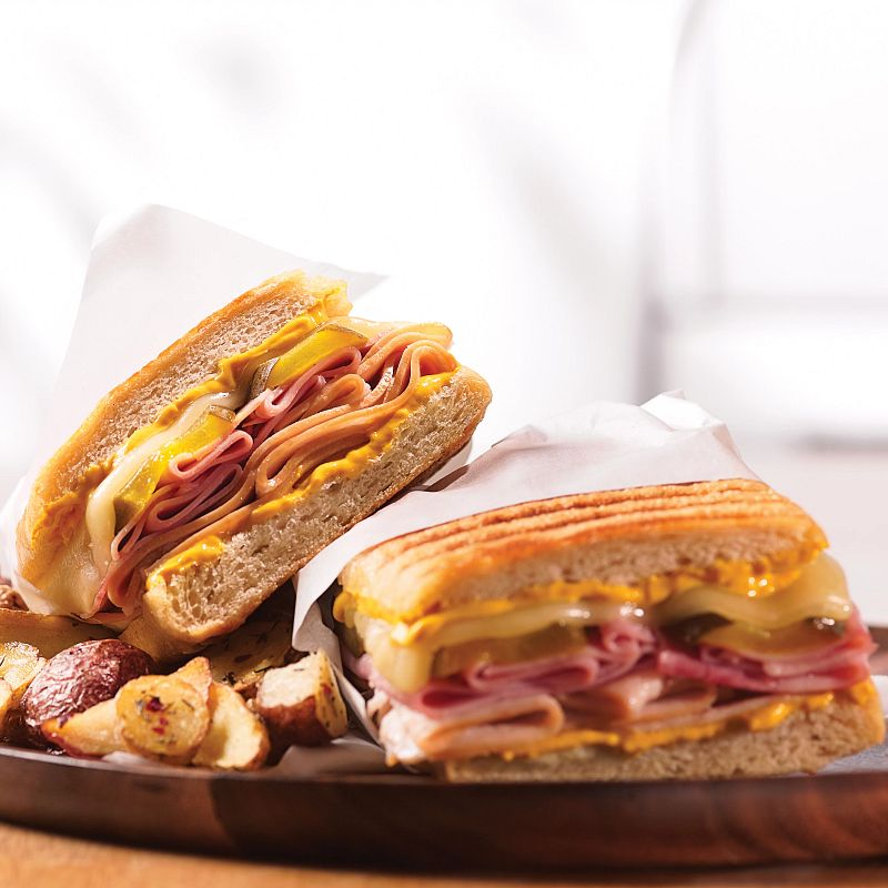 Delicioso perro sencillo, sándwich estilo cubano sencillo y burger sencilla.