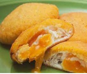 Arepa frita, rellena de huevo.
