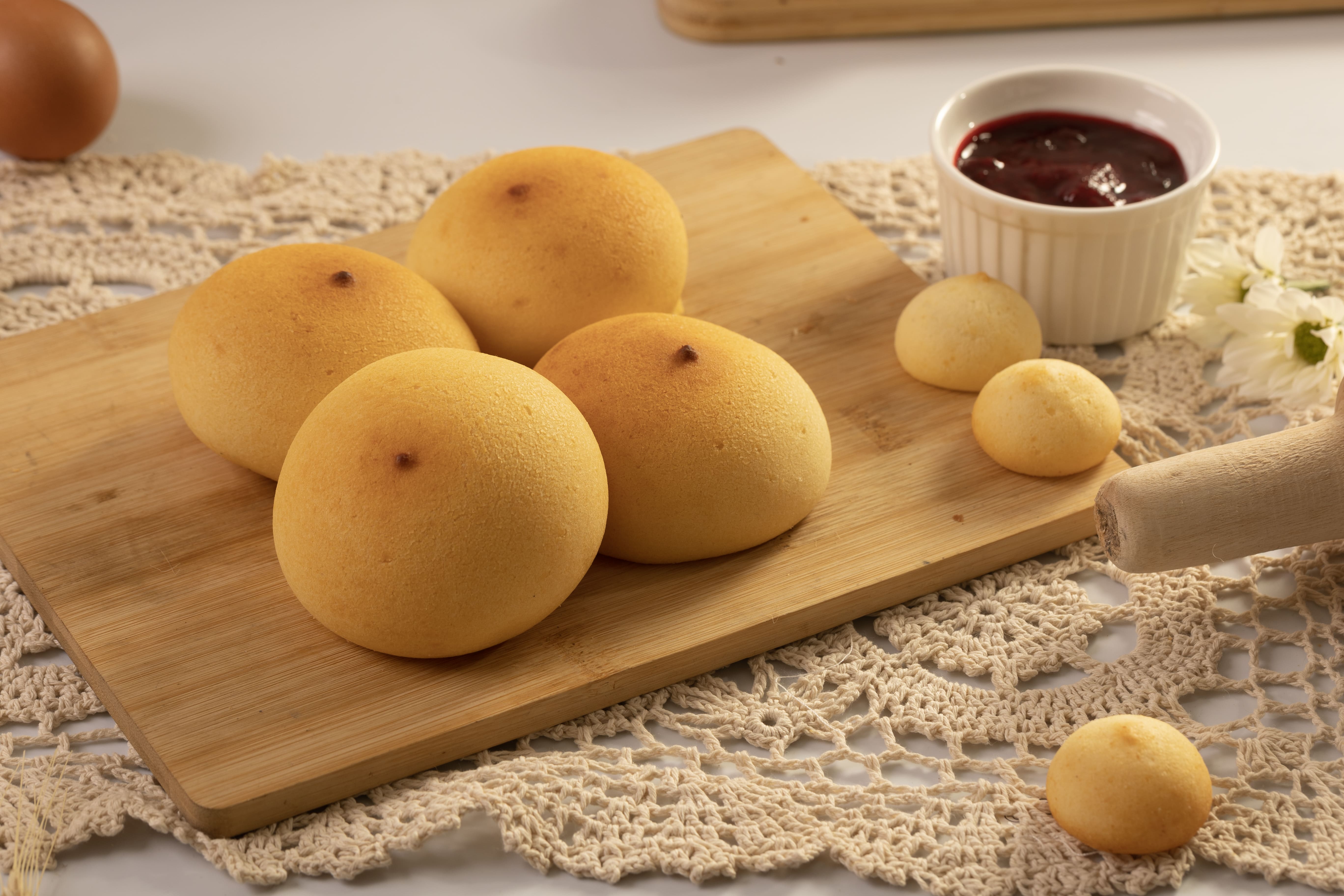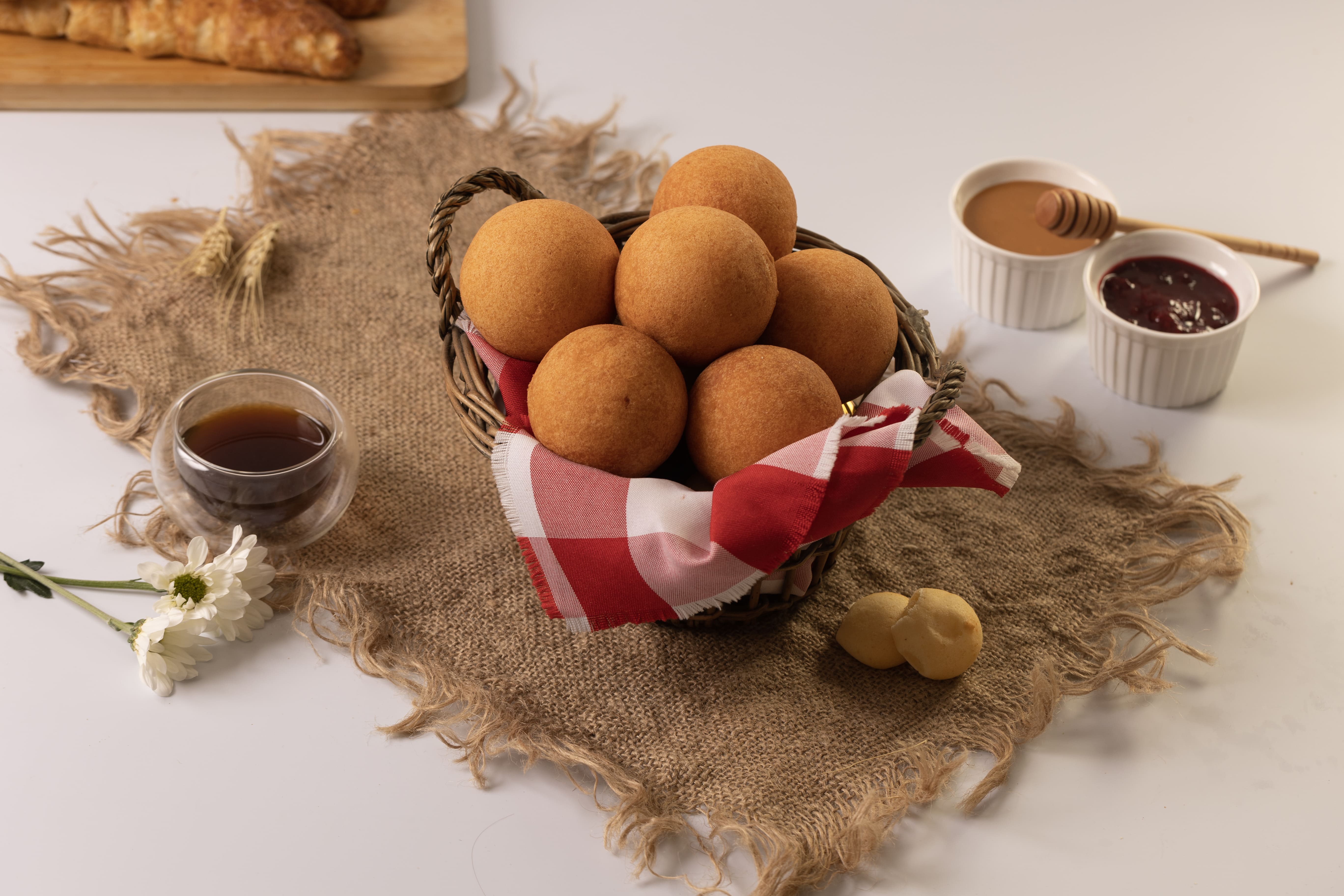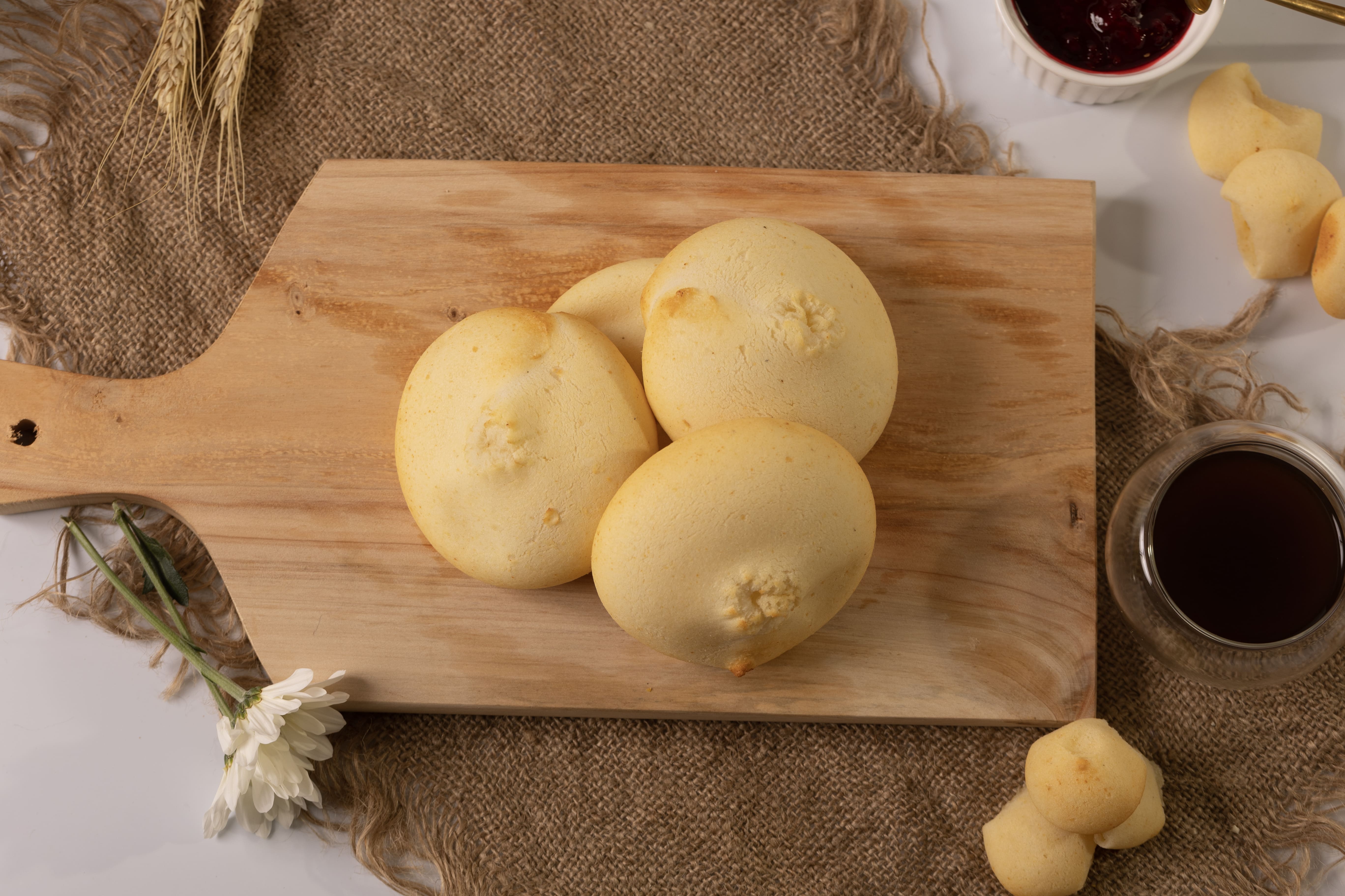 3 tradicionales pandebonos: crujiente por fuera y suave por dentro, elaborado con almidón, queso fresco y un toque de dulzura. Perfecto para acompañar con café o disfrutar a cualquier hora del día.