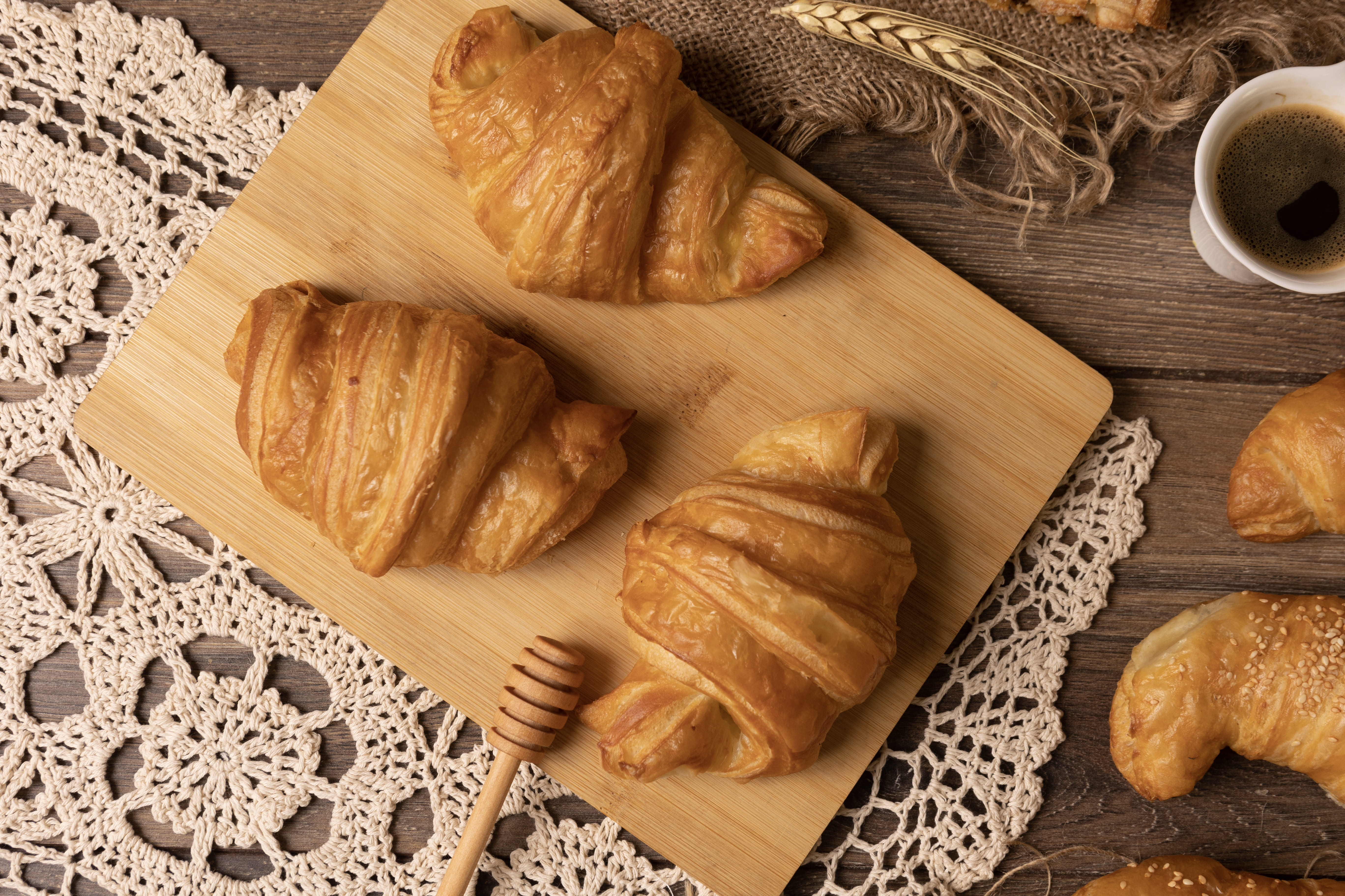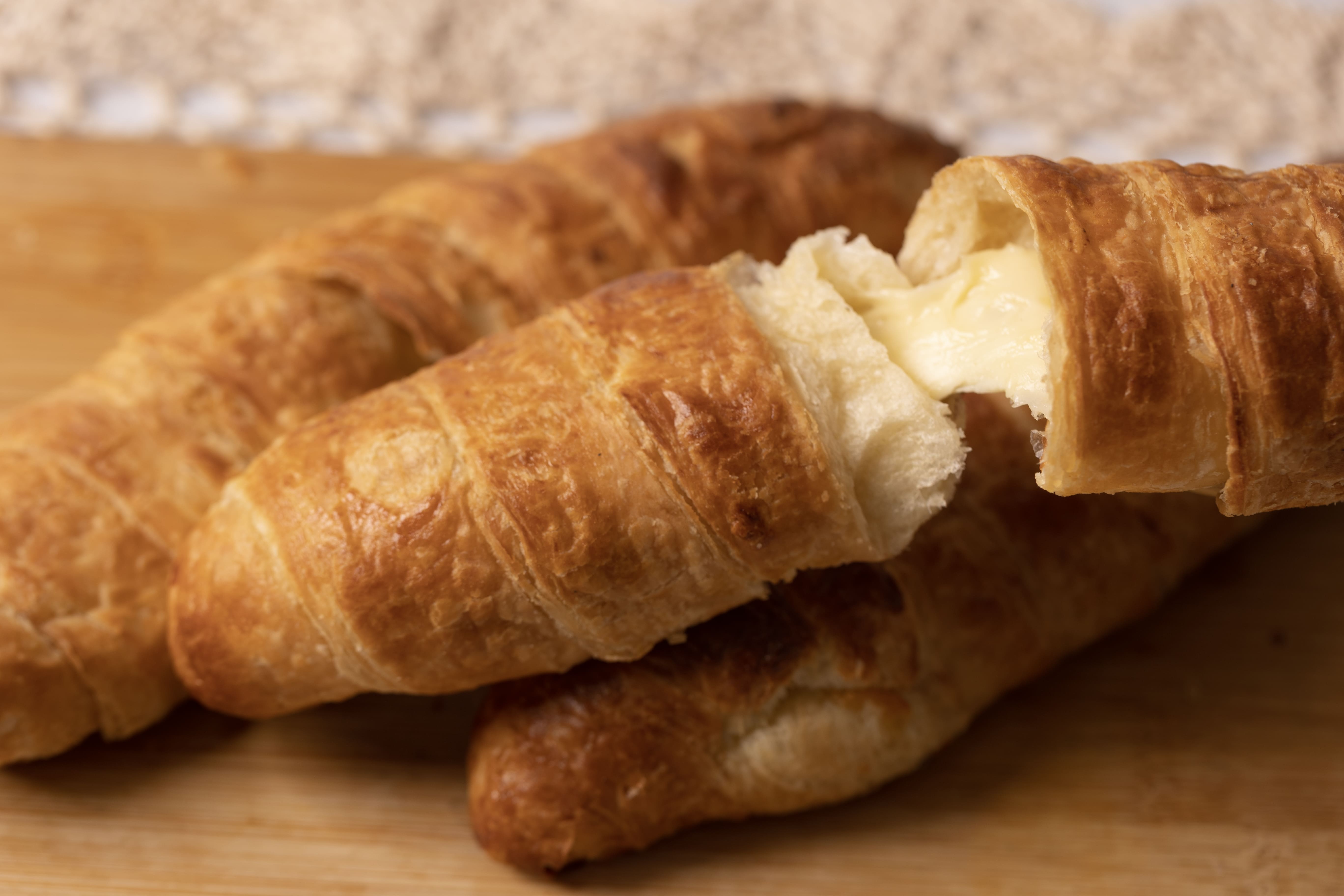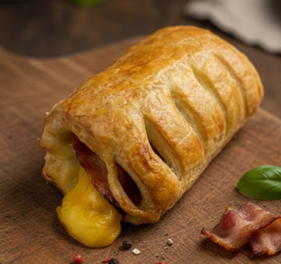 3 deliciosos panes hojaldrados con jamón queso y piña.