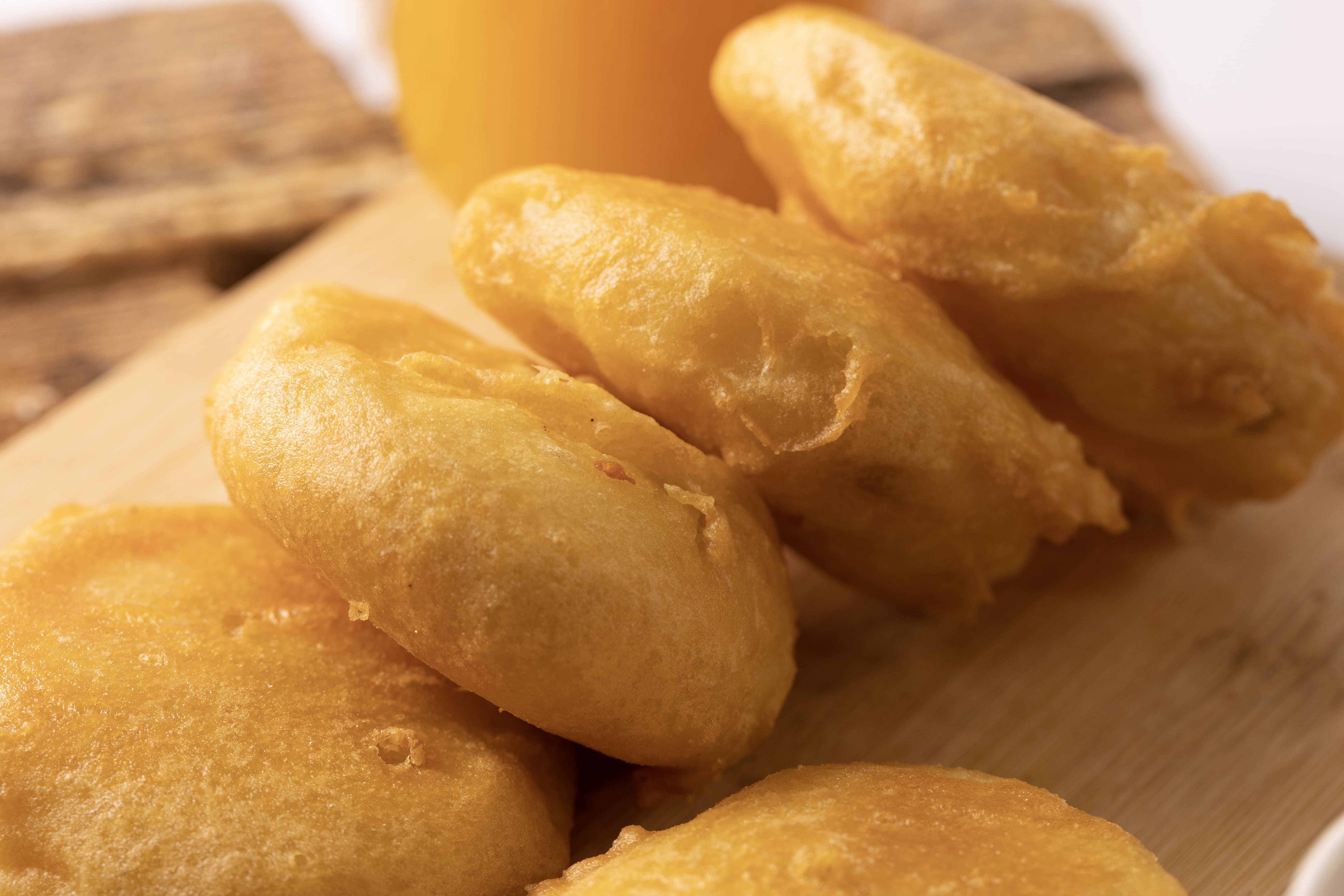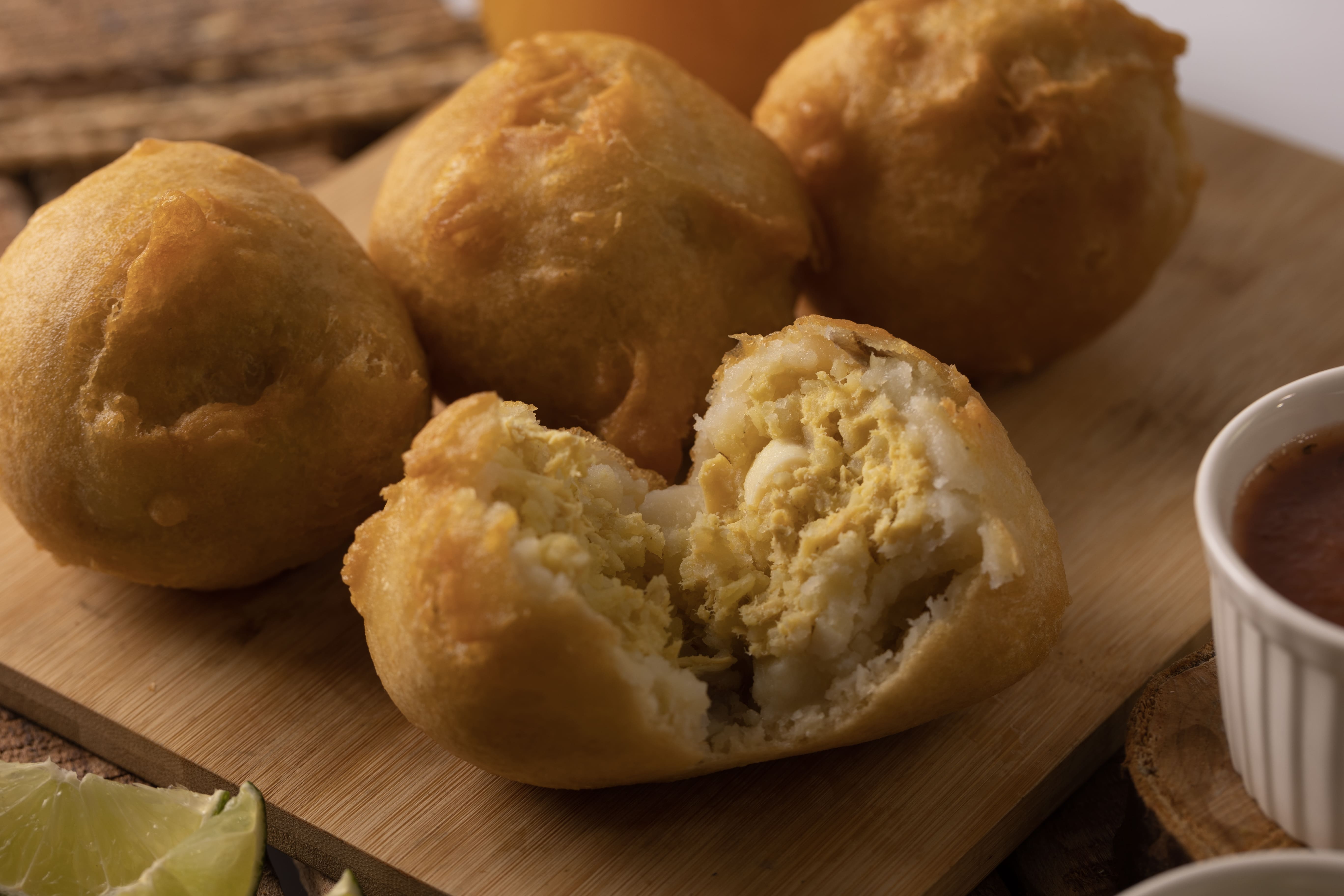 3 tradicionales buñuelos colombianos, crocantes por fuera y suave por dentro, hecho con queso y almidón.