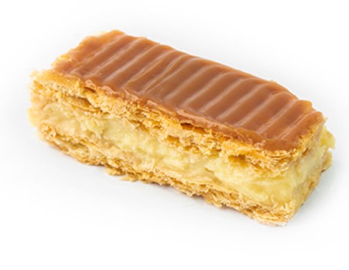 2 deliciosas milhojas: con delicada y suave crema de vainilla entre finas capas de hojaldre, coronadas con una delgada y exquisita capa de arequipe.