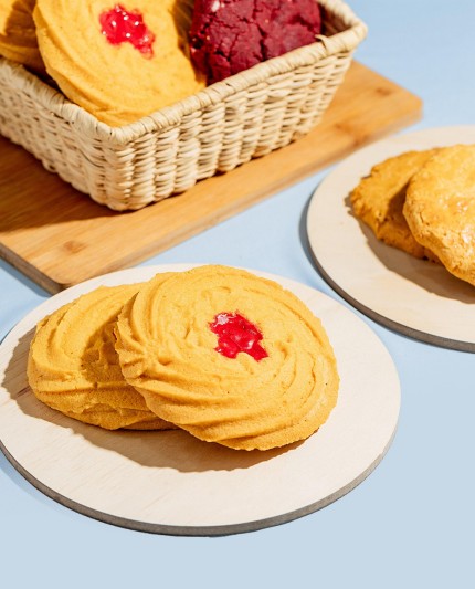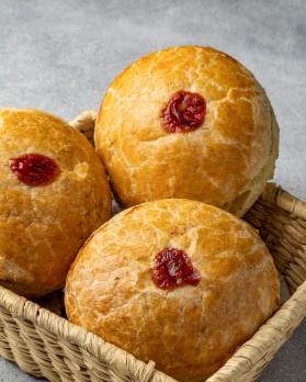 Galleta rizada con mermelada de fresa, unidad.