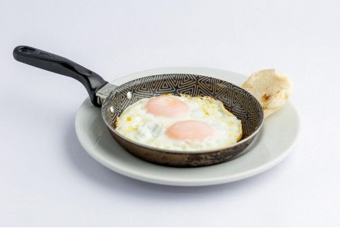 Huevos fritos en mantequilla, acompañado de Pan o Arepa.