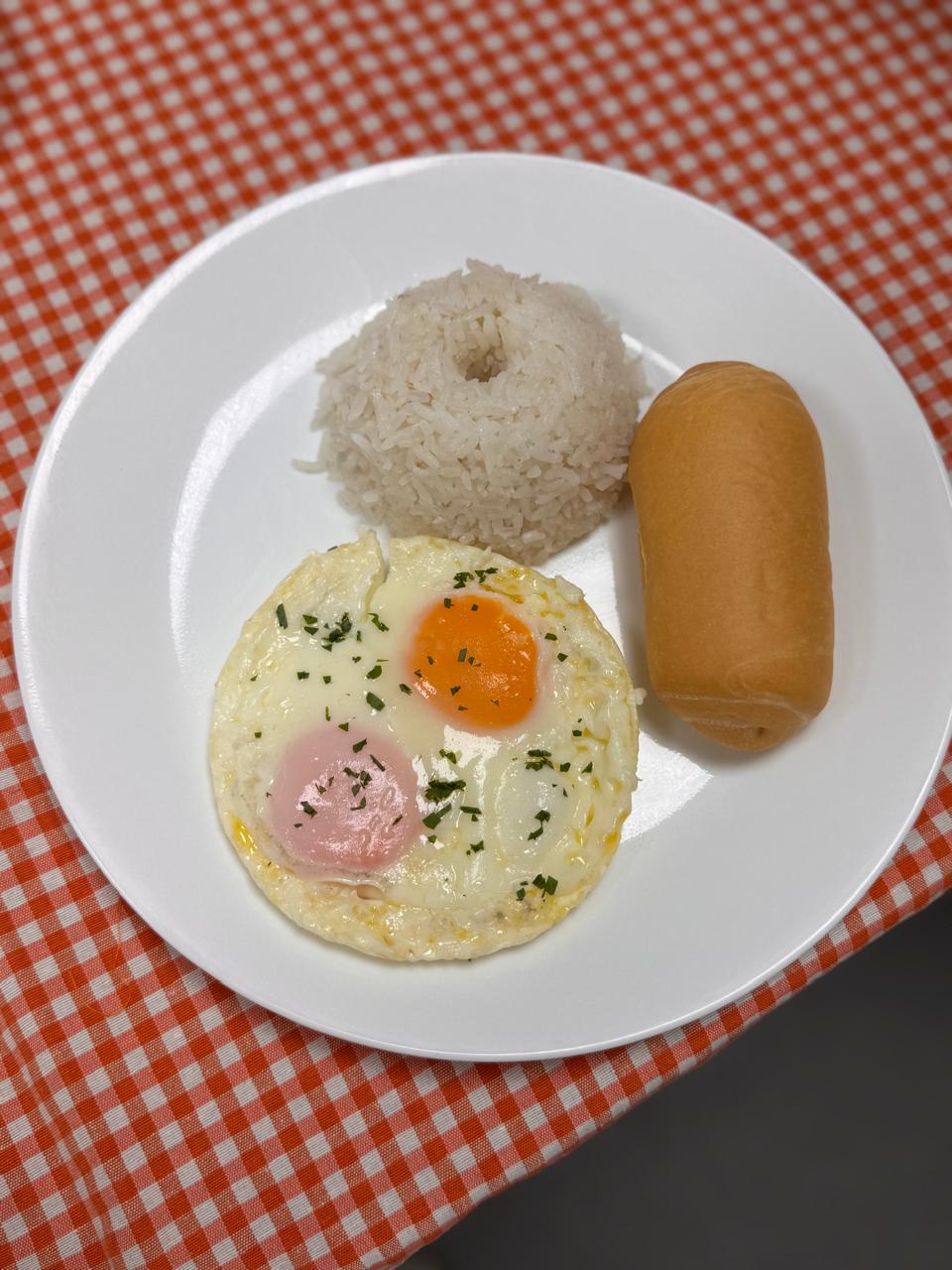 Huevo Cacerola (Huevo frito en mantequilla) acompañados de porcion de Arroz + 1 Pan economico Montecarlo..