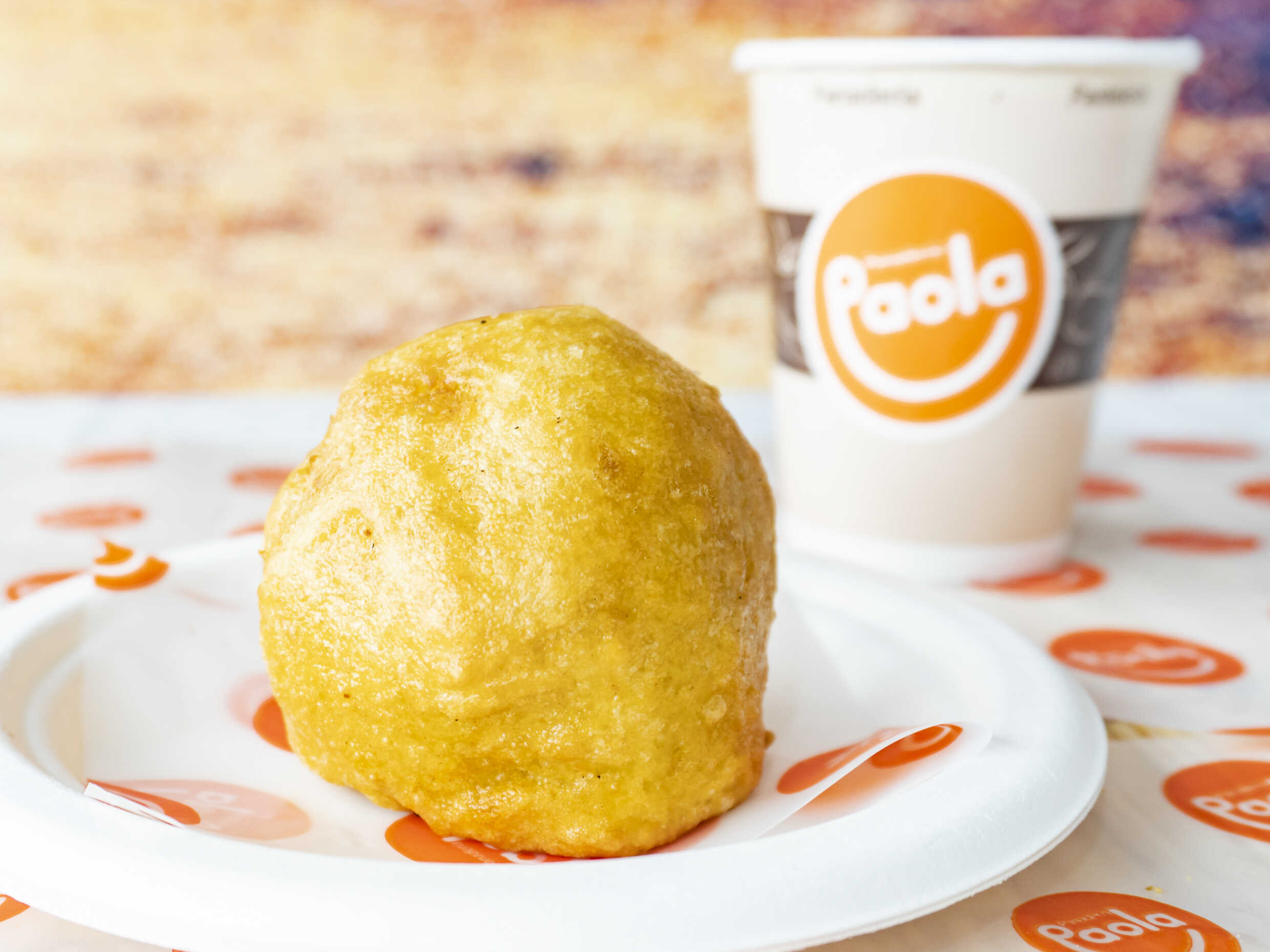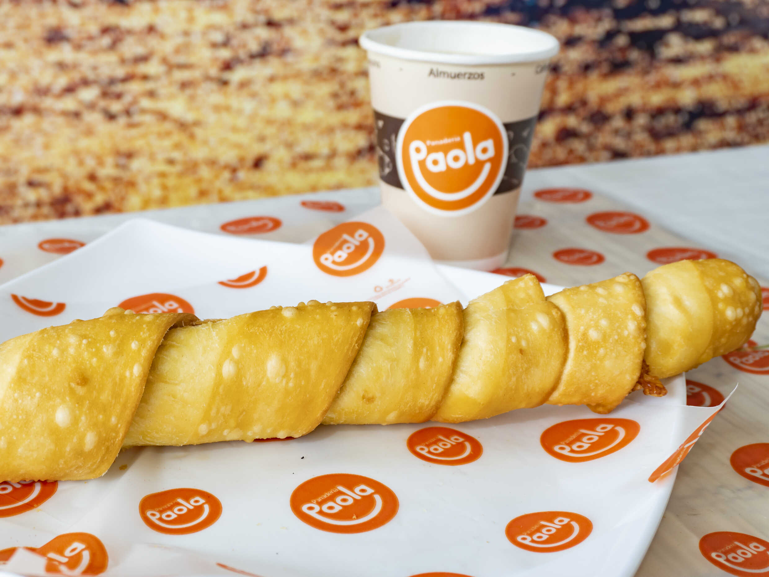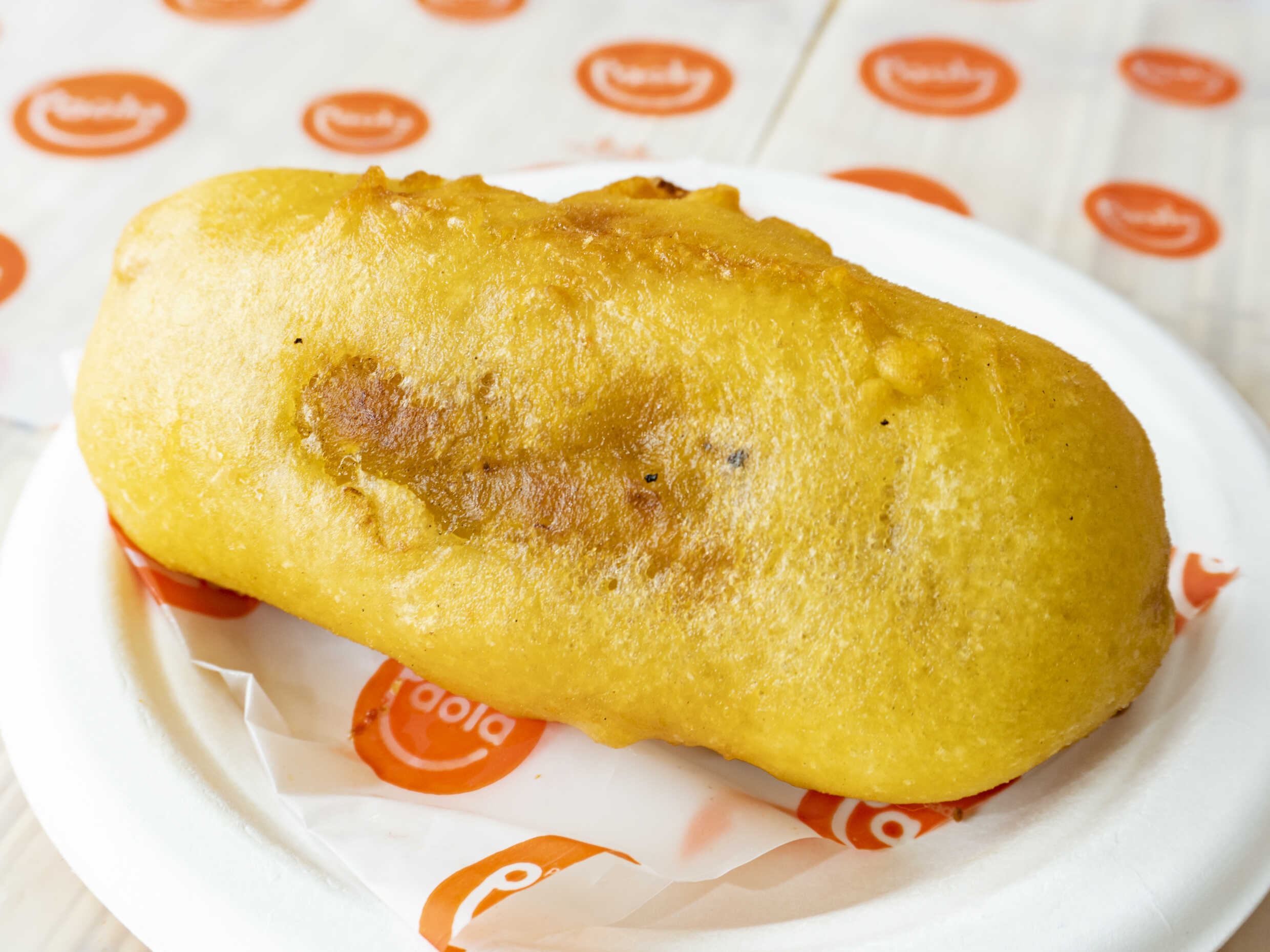 Plátano maduro con queso cubierto de masa de harina de trigo.