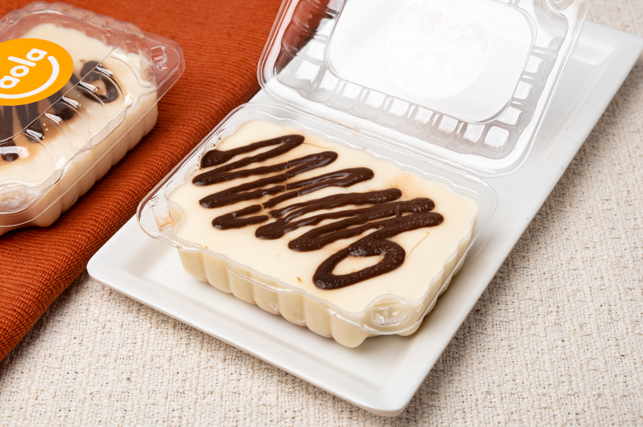 Postre tipo frío con leche condensada, crema de leche, leche común, base galletas, porción personal.