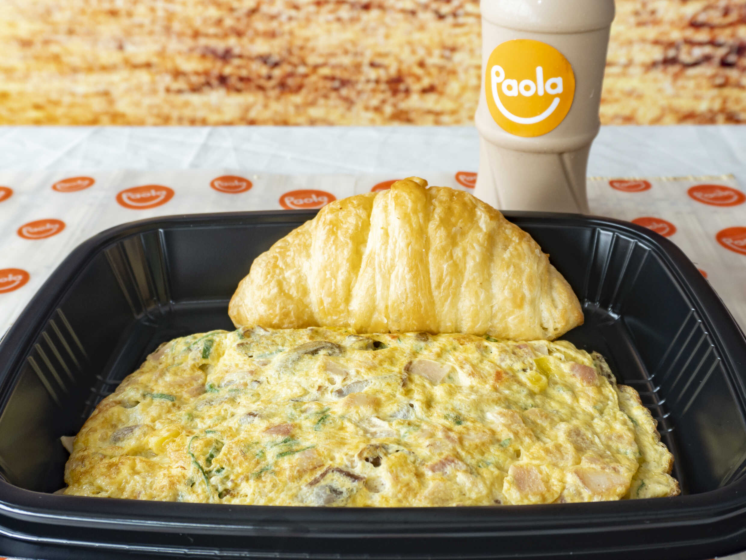 Tortilla de Huevo con carne Desmechada, Jamón, Champiñones, Espinaca, Maíz Tierno, Cebolla y Tocineta.