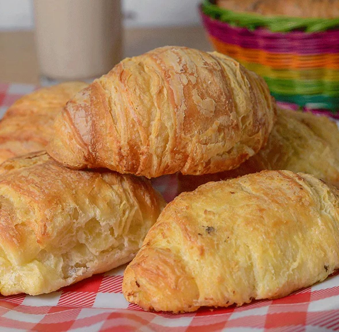 Pan hojaldrado en forma de media luna. No lleva queso.