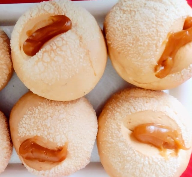 Pan elaborado con harina, huevos, cubiertos con azúcar y dulce de leche.