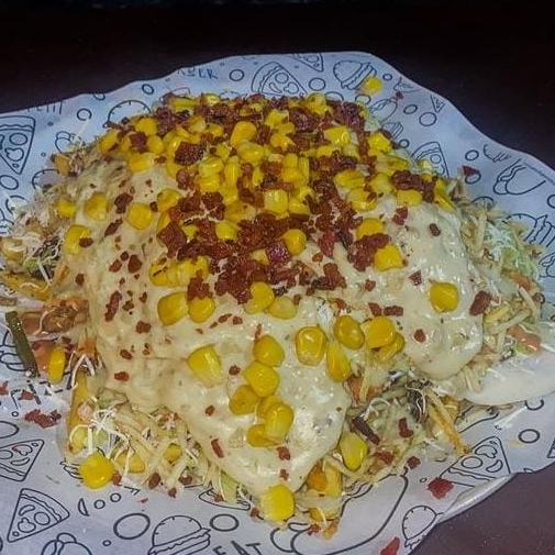 Papa , salchicha, queso mozarella, tocineta ahumada, pulled pork en salsa sweed, maicitos tiernos, ripido de papa, salsas caseras.