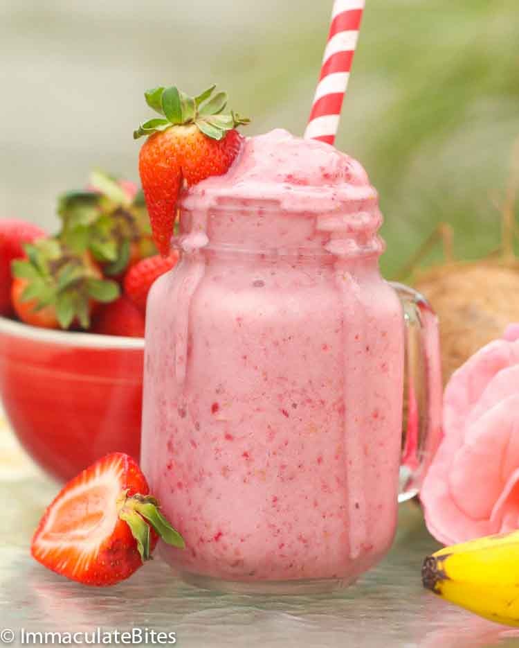 Dos bolas de helado, fresa, banano, queso, crema chantilly, cereza, arequipe, lechera.