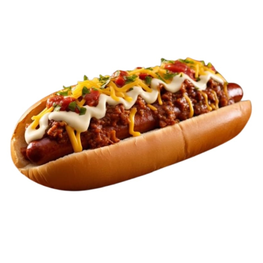 Pan, salchicha, queso doble crema, ripio de papa, salsa