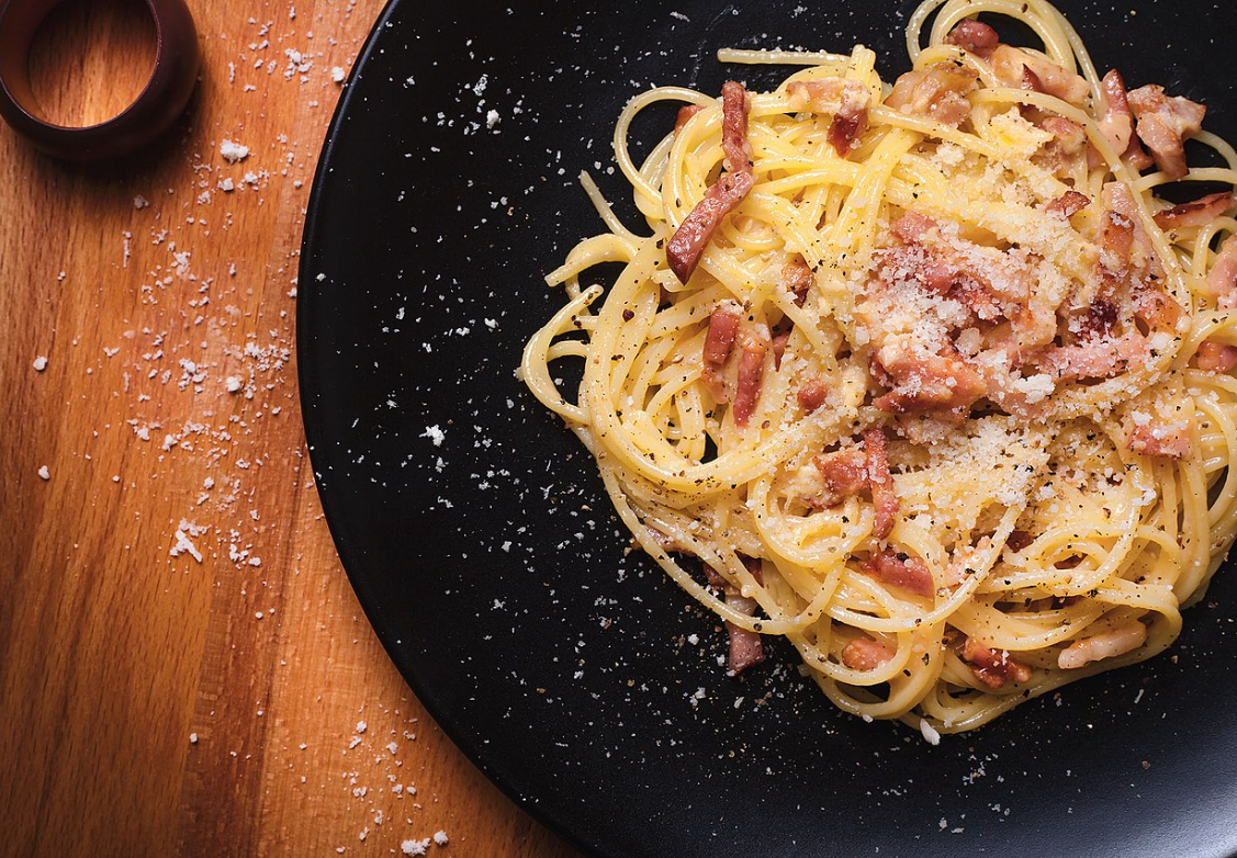 Spaghetti, tocineta ahumada, pollo desmechado, champiñones, salsa carbonara y queso parmesano.
