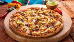 Masa artesanal, salsa napolitana, queso mozzarella, carne desmechada, frijol chile, cebolla, tomate, maíz, jalapeños y guacamole.