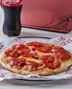 Masa artesanal, salsa napolitana, queso mozzarella y pepperoni.
