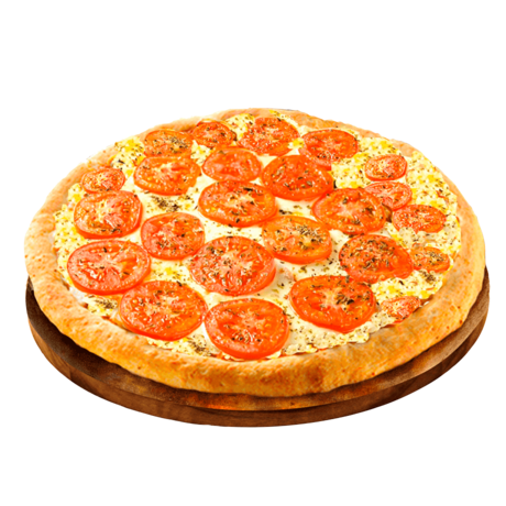 Masa artesanal, salsa napolitana, queso mozzarella, tomate en rodajas, aceite oliva y especias.