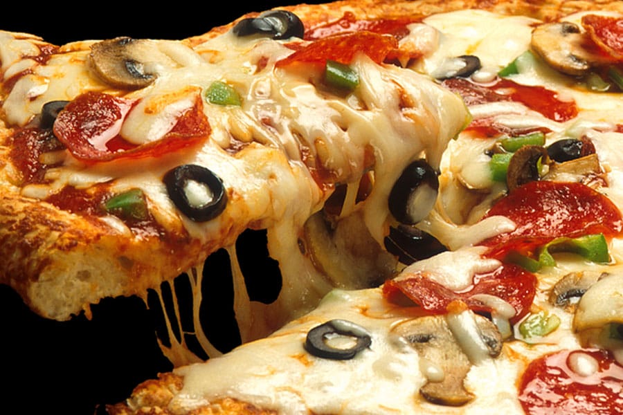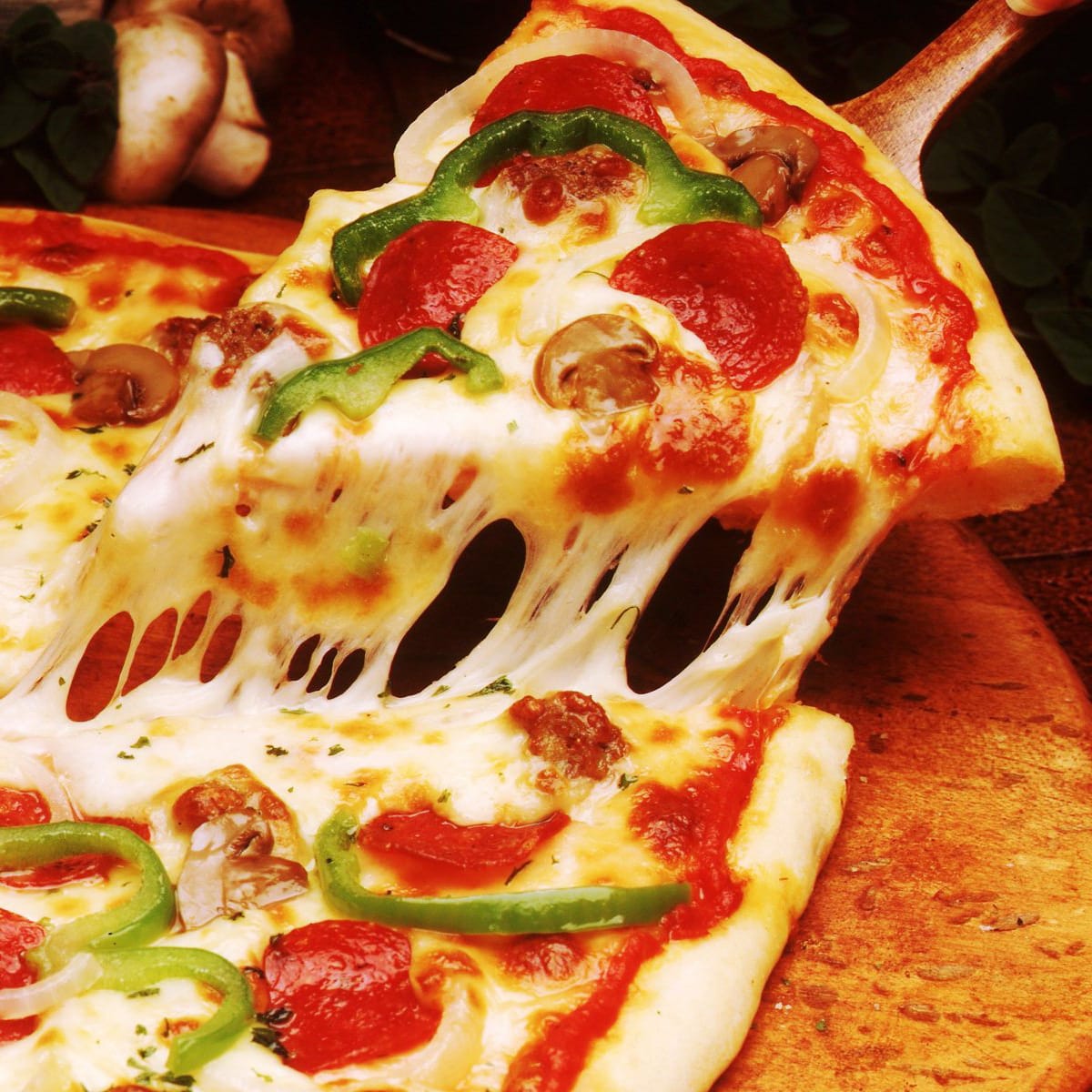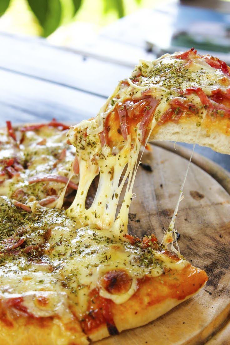 Nuestra exquisita masa tradicional, pasta de tomate natural, queso de la casa, pollo horneado, jamón ahumado, tocineta asada, champiñón o camarón, cebolla y orégano.