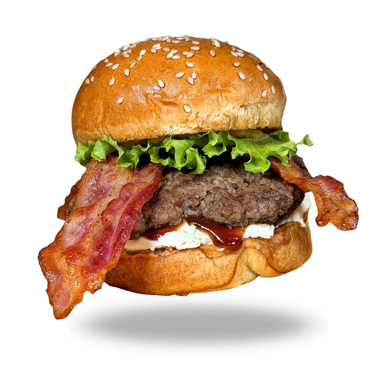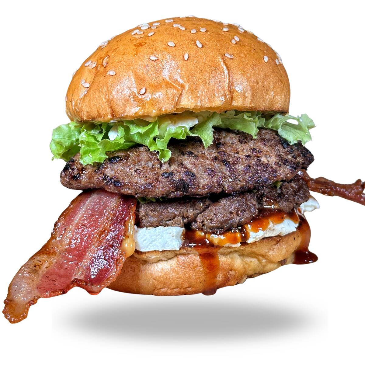 Pan brioche, 150 gr angus, queso philadelphia, doble tocineta, BBQ, lechuga y salsa de la casa.