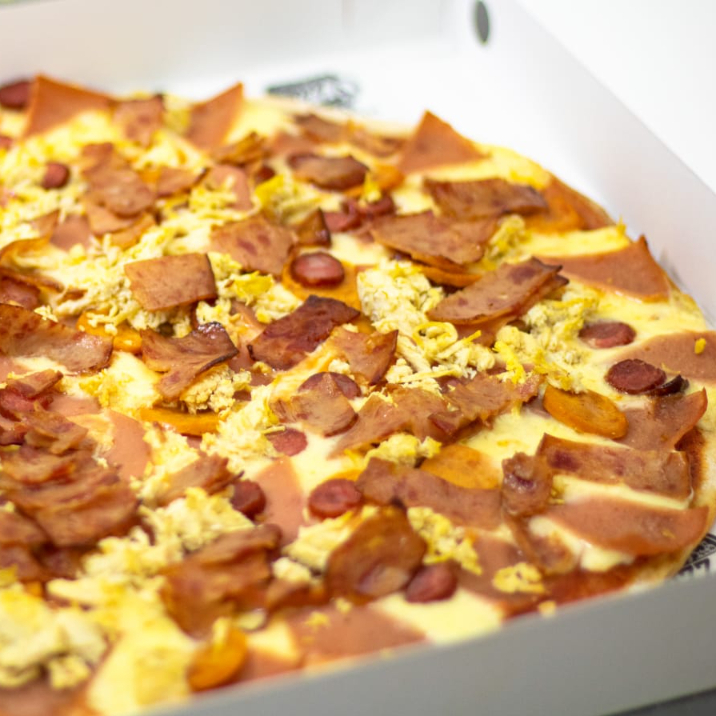 Queso, jamon, cabano, chorizo, pollo y tocineta