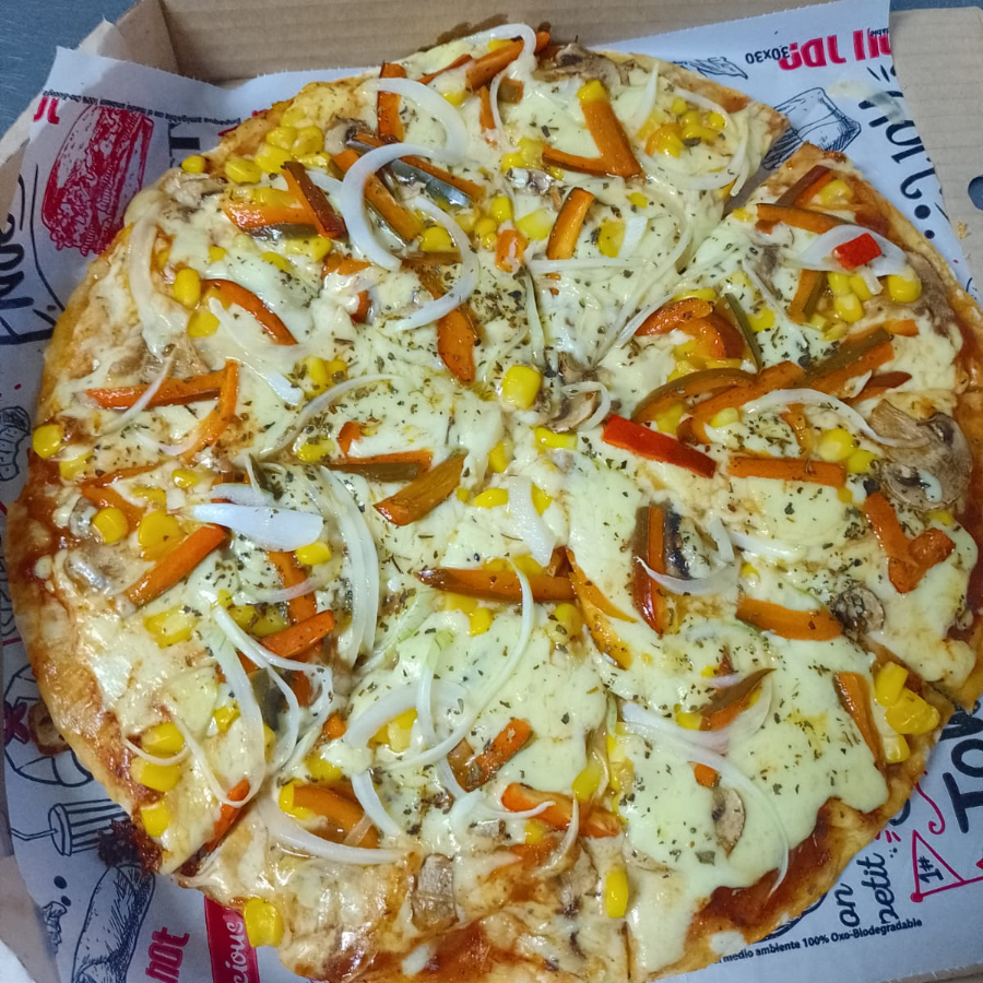 Pizza Vegetales Personal Queso, champiñon, maiz, pimenton, cebolla, albaca