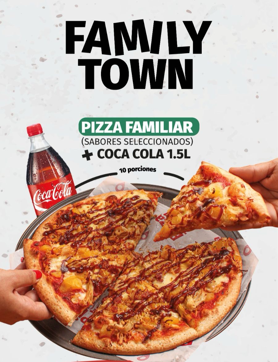Pizza Grande 40cm para 10 porciones donde puedes seleccionar tu sabor + 1 Coca Cola 1.5Lt