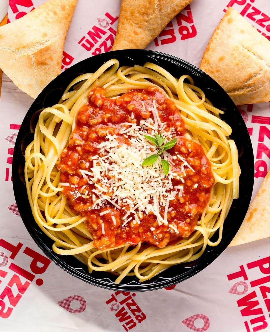 Spaghetti, carne en salsa boloñesa y queso parmesano.