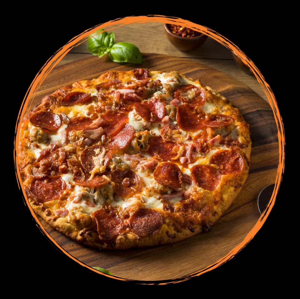 Nuestra exquisita masa artesanal, pasta de tomates naturales, queso de la casa, laminas de carne asada, pollo horneado, jamón ahumado, pepperoni y salchicha ranchera asada. !Es una verdadera fiesta de sabores cárnicos que te hará disfrutar cada bocado!