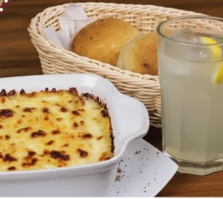 Lasagana de pollo en salsa bechamel acompañada de limonada natural