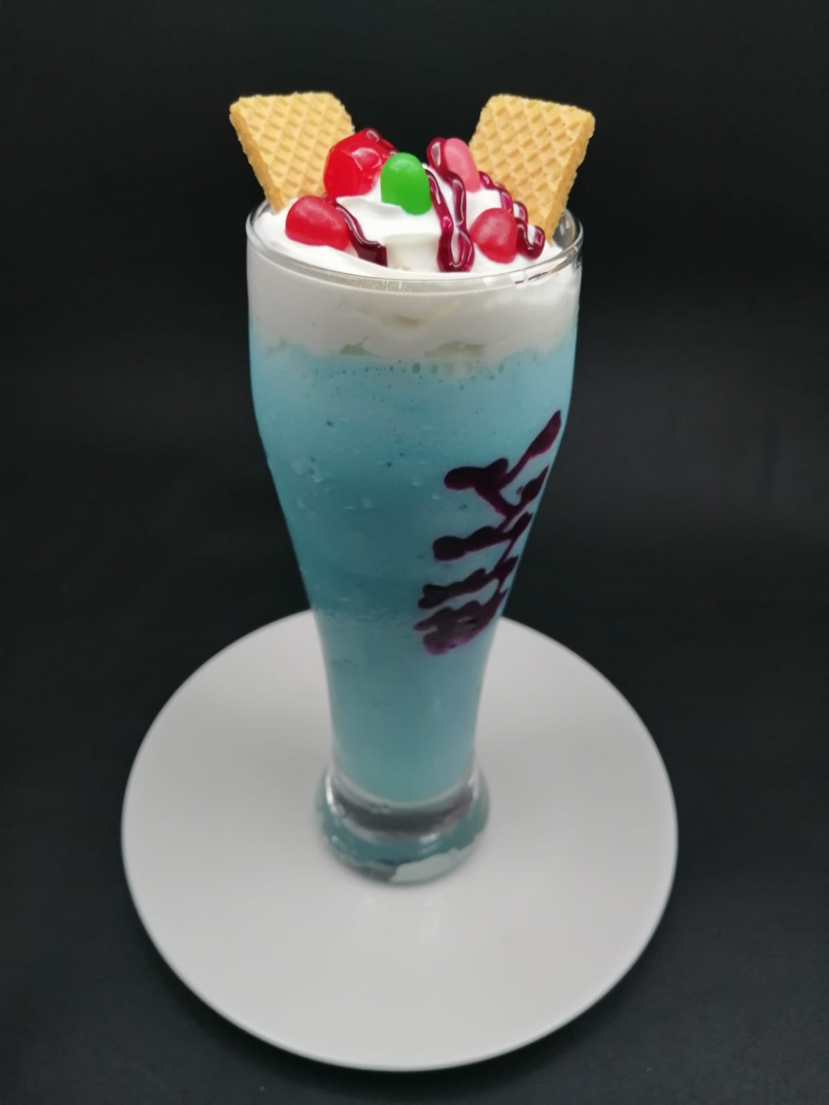 Tres bolas de helado, glaseado de Mora, fresa, leche condensada, cereza.