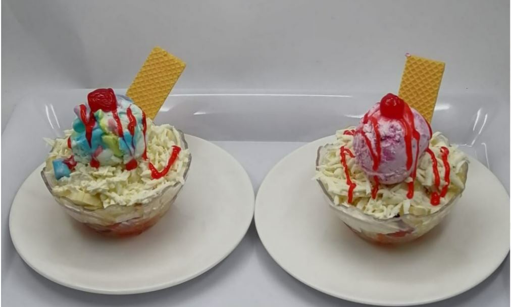 sabor de helado de tu preferencia, bananos, fresas, queso, chantichy