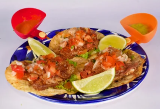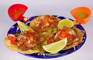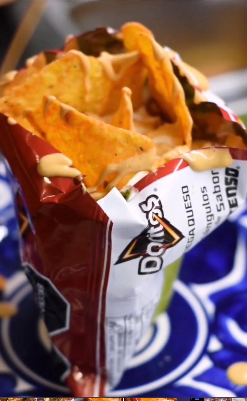 Doritos, proteina a elección (carne o pollo) maicitos, lechuga, pico de gallo, guacamole y salsa de la casa