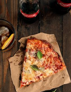 Porción de Pizza Hawaiana*1 (Porción de pizza de masa artesanal, jamón, piña y queso mozzarella.)+ Coca Cola 250 ml*1