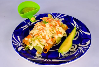 Tortilla de maíz, queso mozzarella, lechuga, pico de gallo y carne.