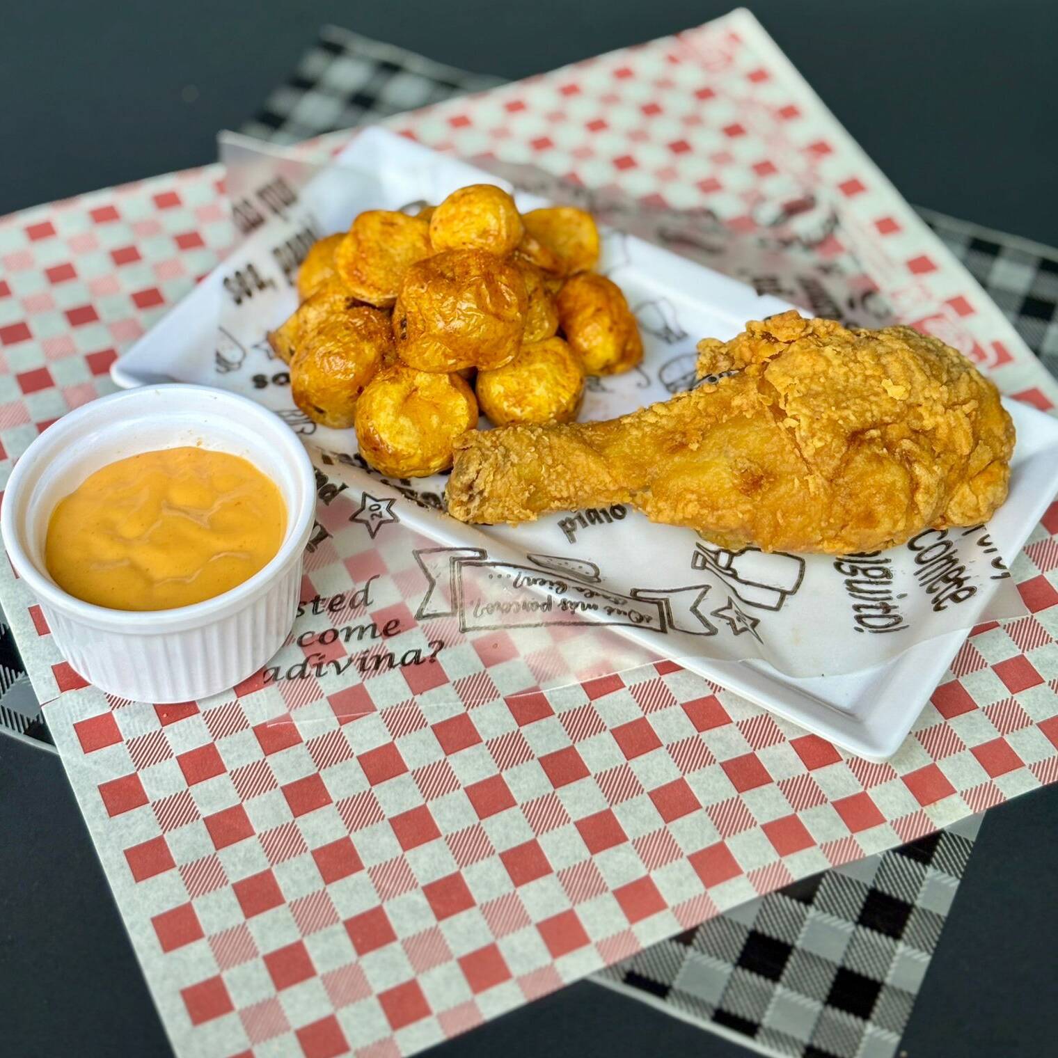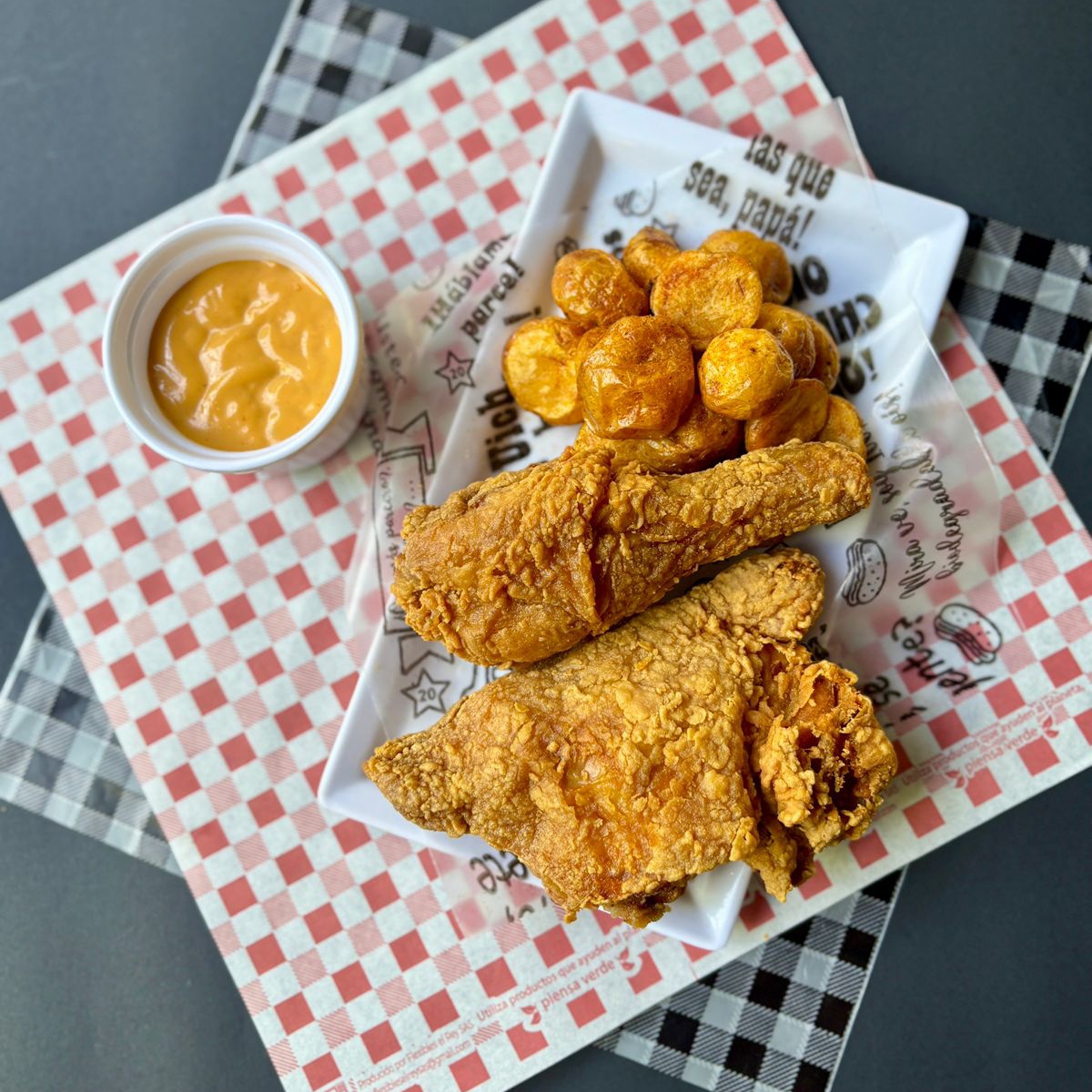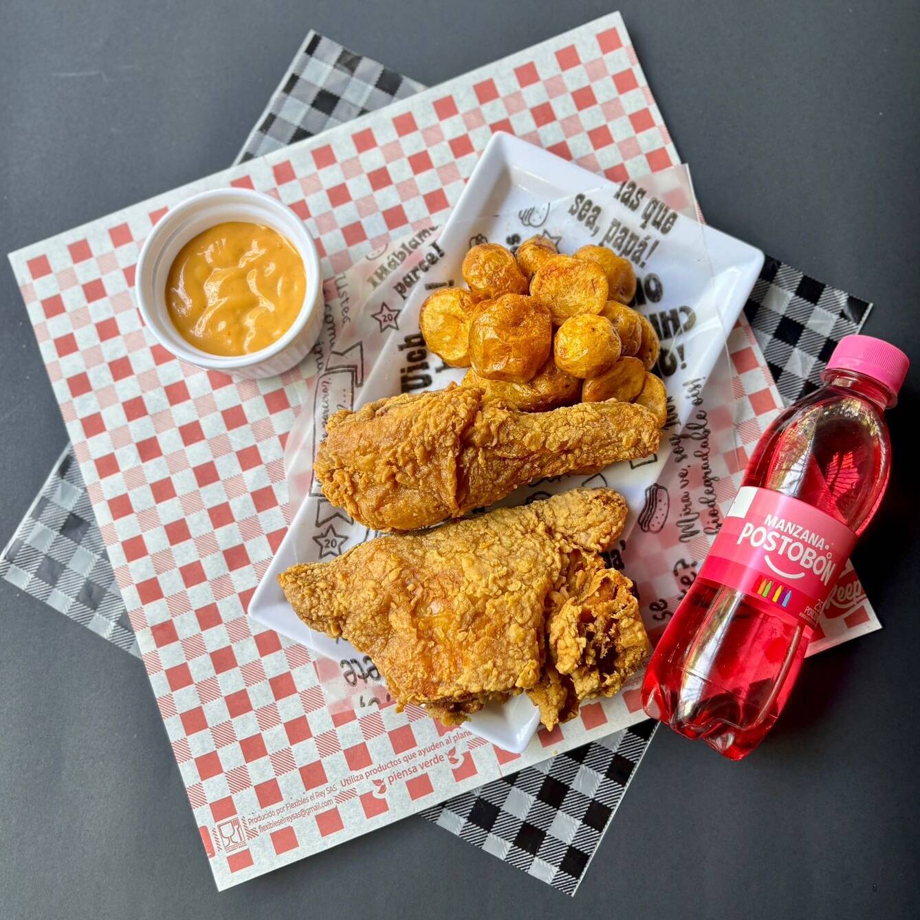 2 Presas Broaster, Porción de Papas amarillas y Gaseosa Pet 250 ml.