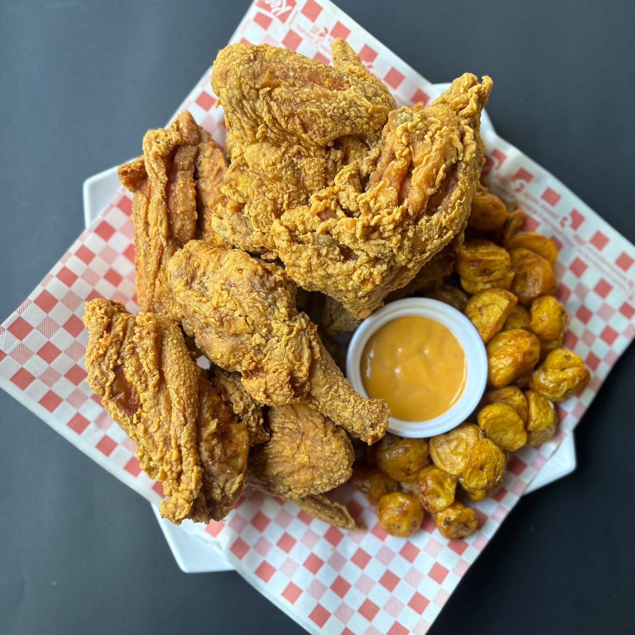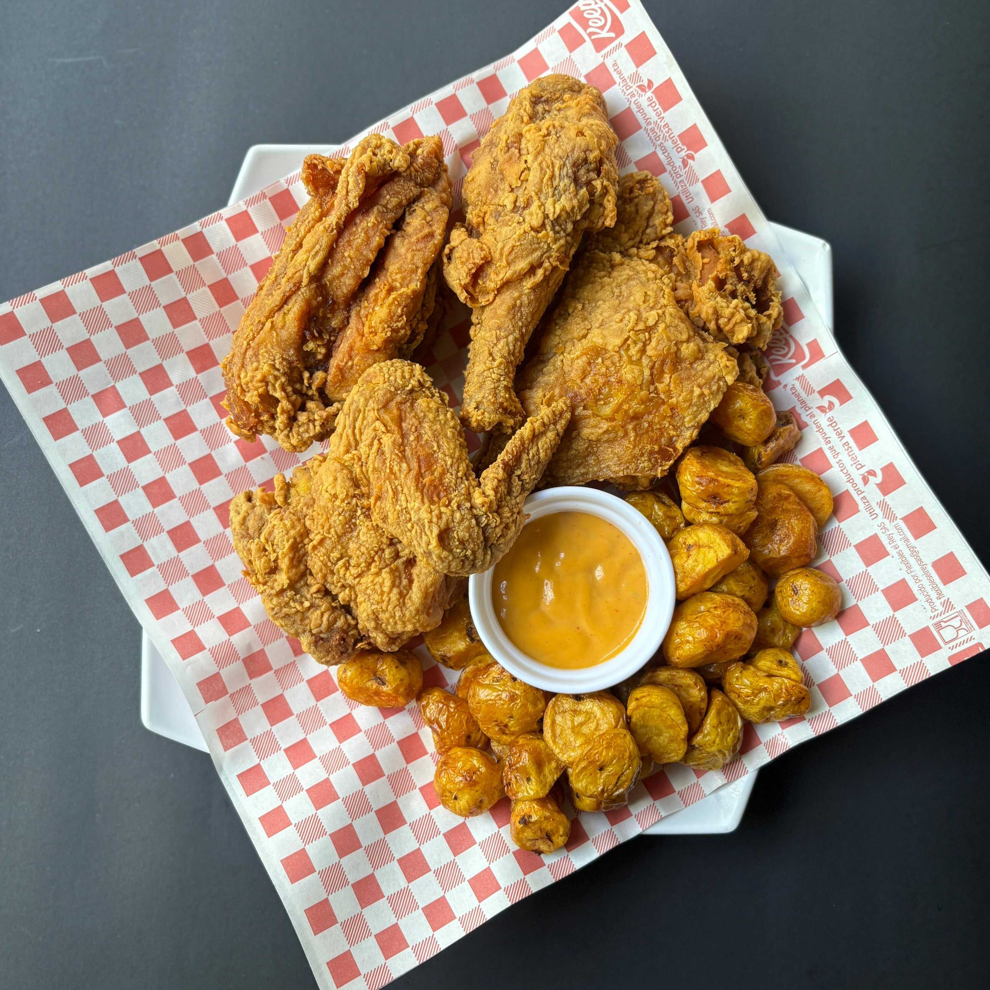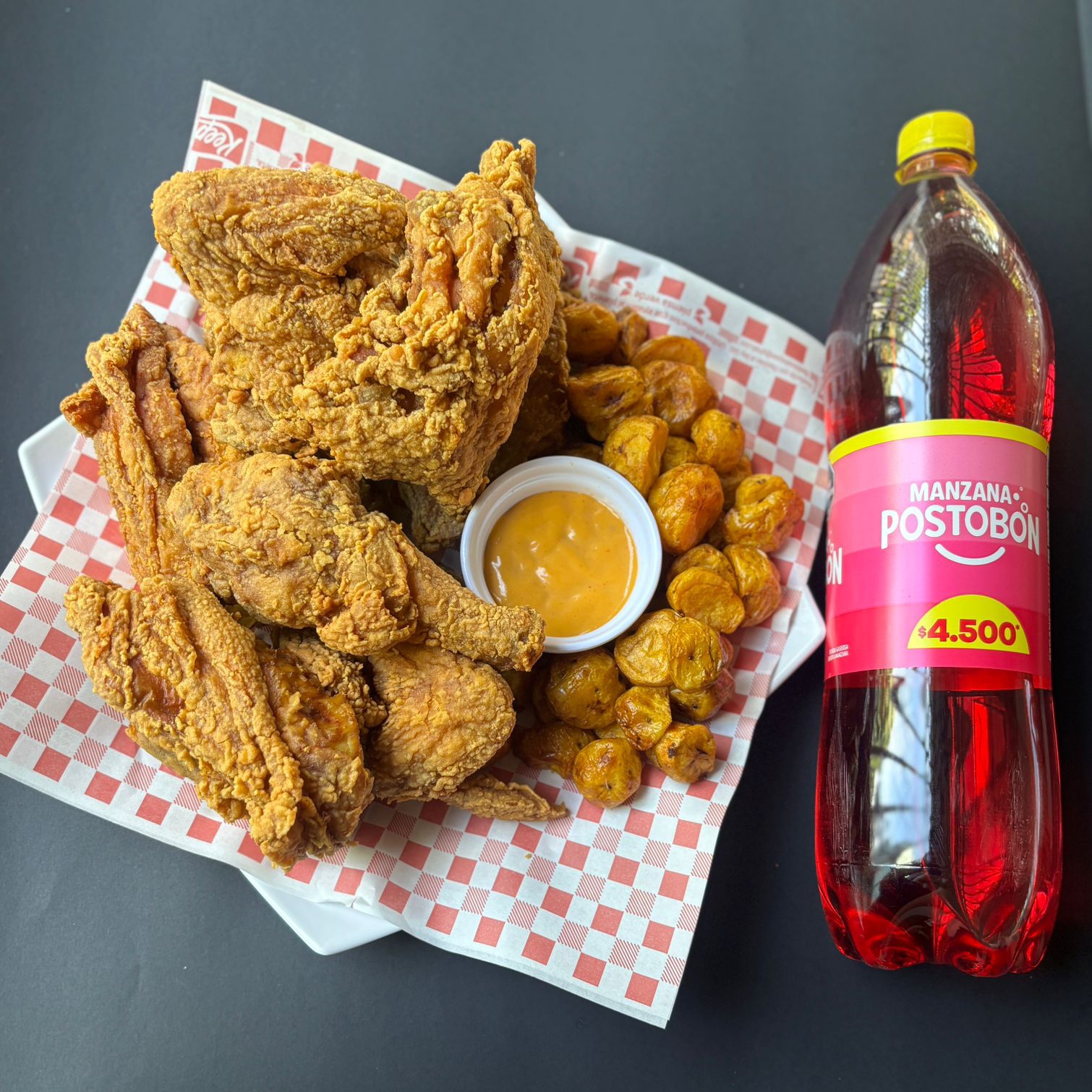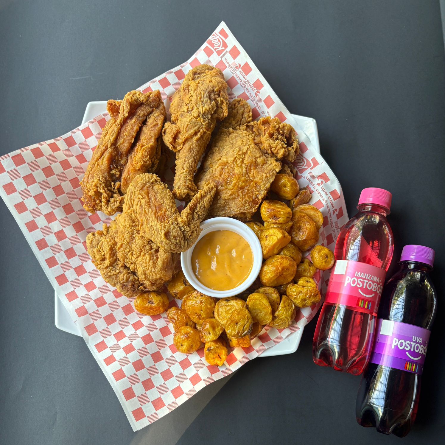 8 presas broaster, porción papa amarilla y 1 Gaseosa 1.5 lts.