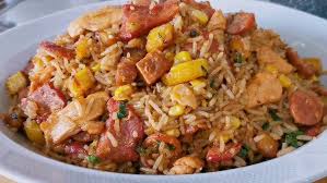 Delicioso arroz acompañado de carne, pollo, tocineta y maíz.