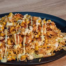Maíz, queso, tocineta y pollo.