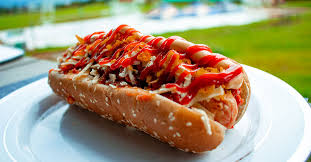 pan, salchicha, salsa de la casa y ripio.