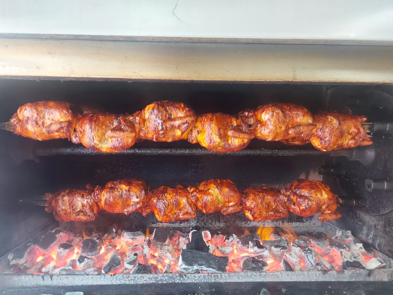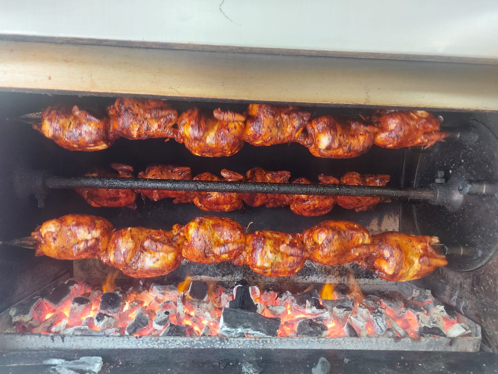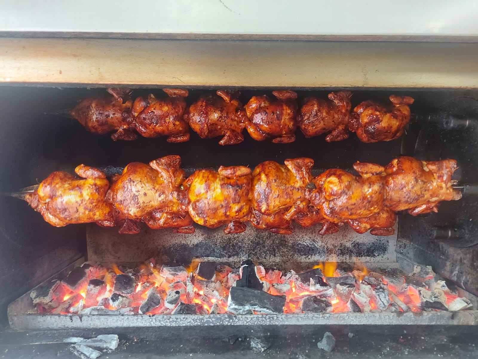 1/4 de pollo asado acompañado de papa cocida, arepa sin sal, porción de arroz y 24 onzas de consomé.
