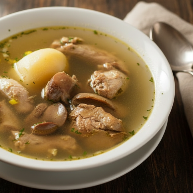 Consomé de ricas menudencias.