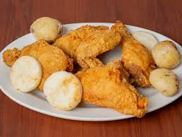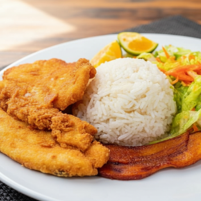 Medio Pollo apanado (4 presas) acompañado de papa y maduro